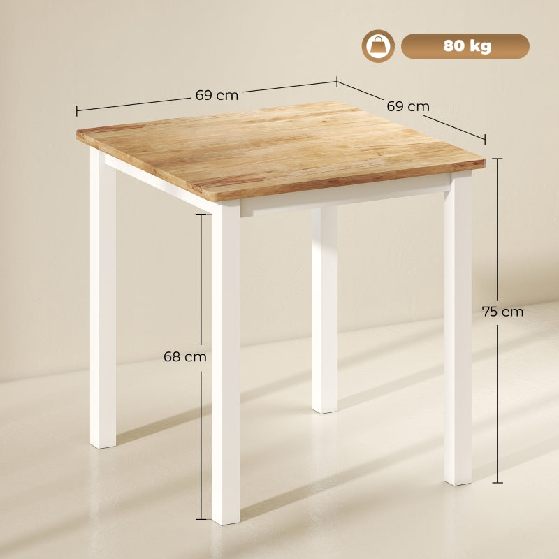 Dining table product information: Overall dimensions: 69W x 69D x 75H cm. Load capacity: 80 kg.