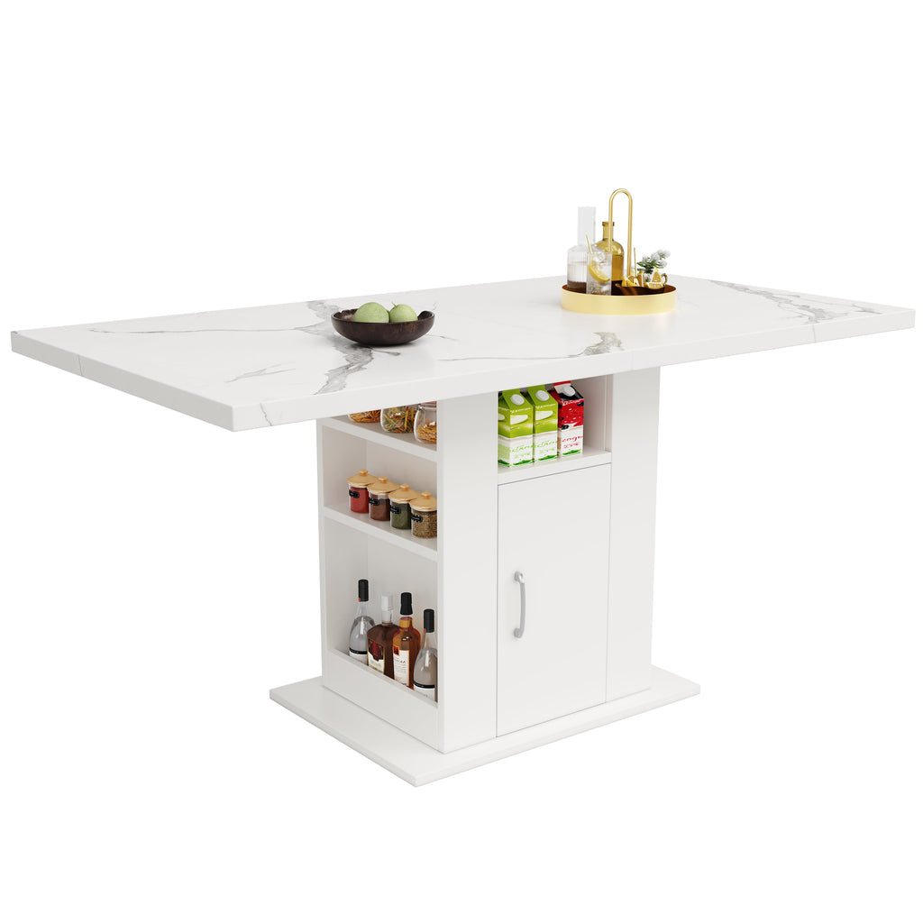 Dining Table, Storage Space-Saving 3-Tier, White Marble Top