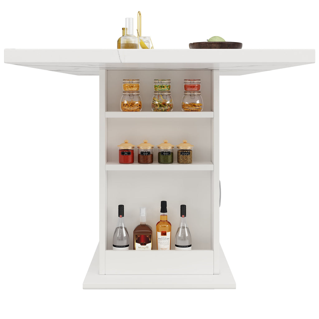 The large storage space easily accommodates tablecloths, tableware, kitchen spices, and household items. Small items such as wine or spice jars can be placed on either side of the table. The three-tiered dining table with storage maximizes space utilization. The sturdy base ensures that the table does not wobble or shake, ensuring long-lasting and stable use in your home.
