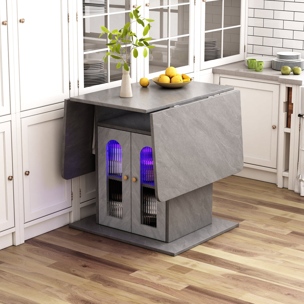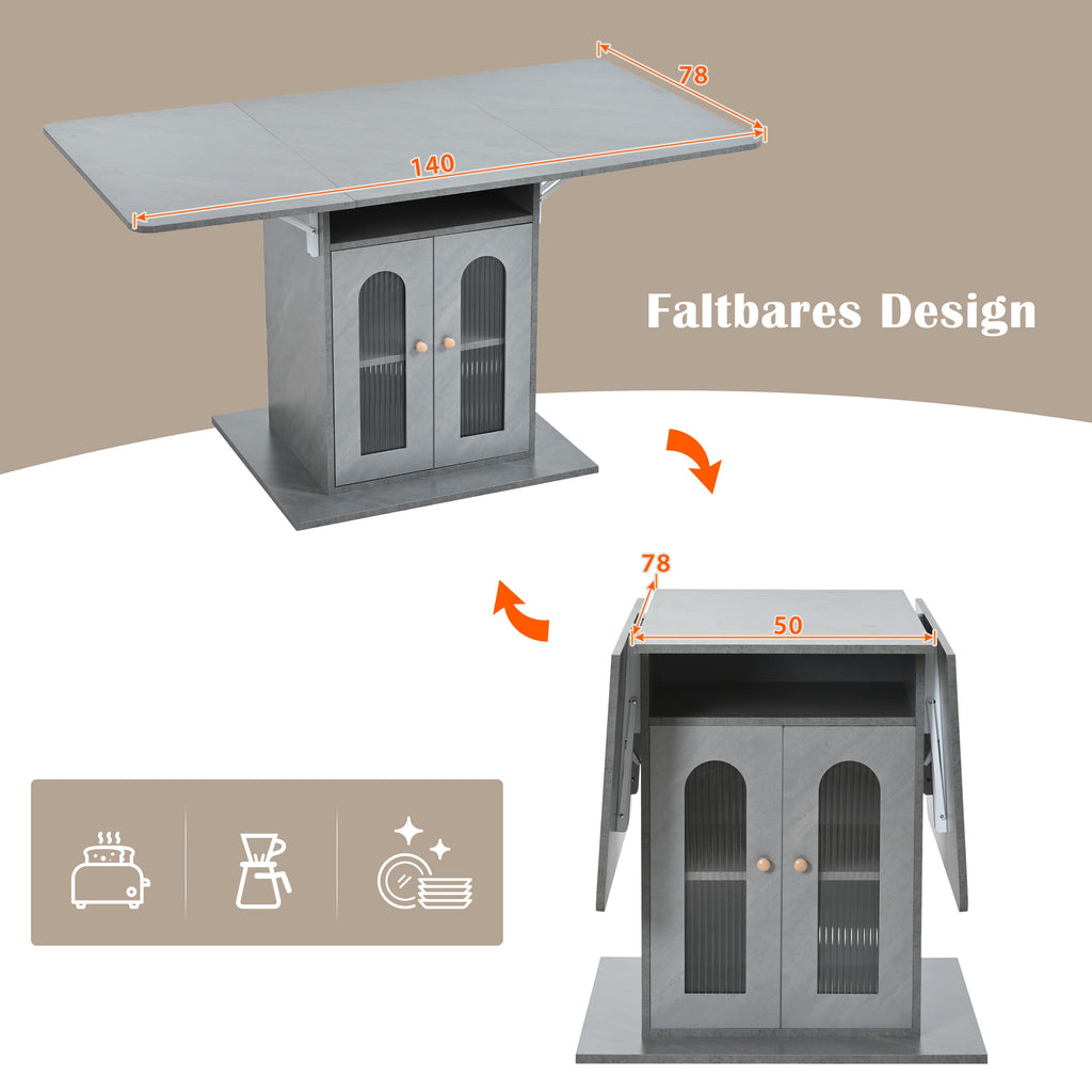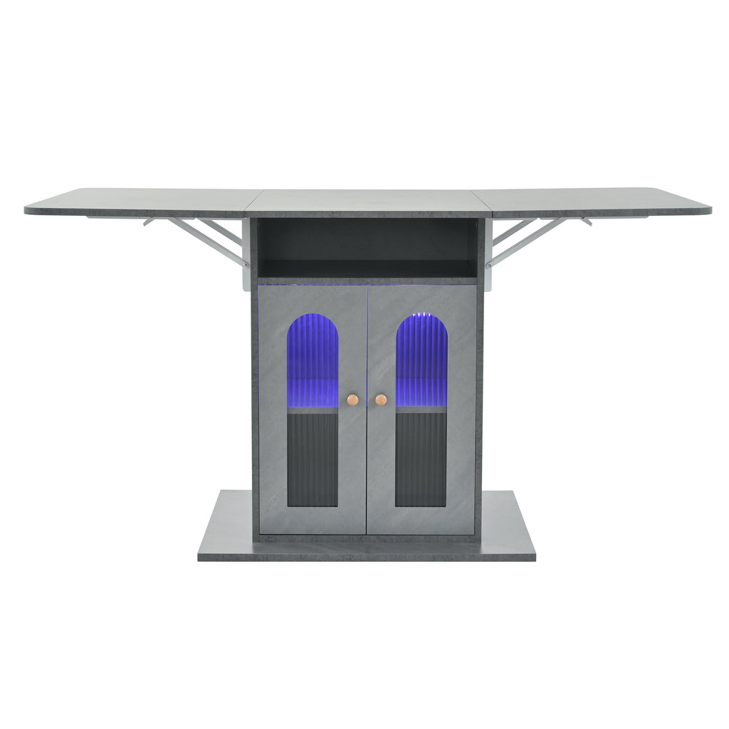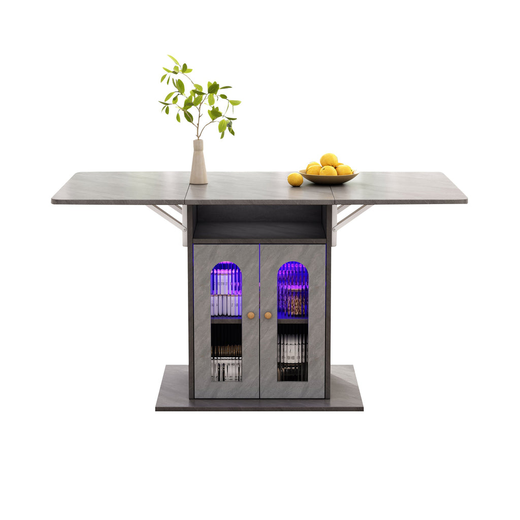 Folding Dining Table, Modern Extendable with LED Lighting & Storage, 140x78 cm