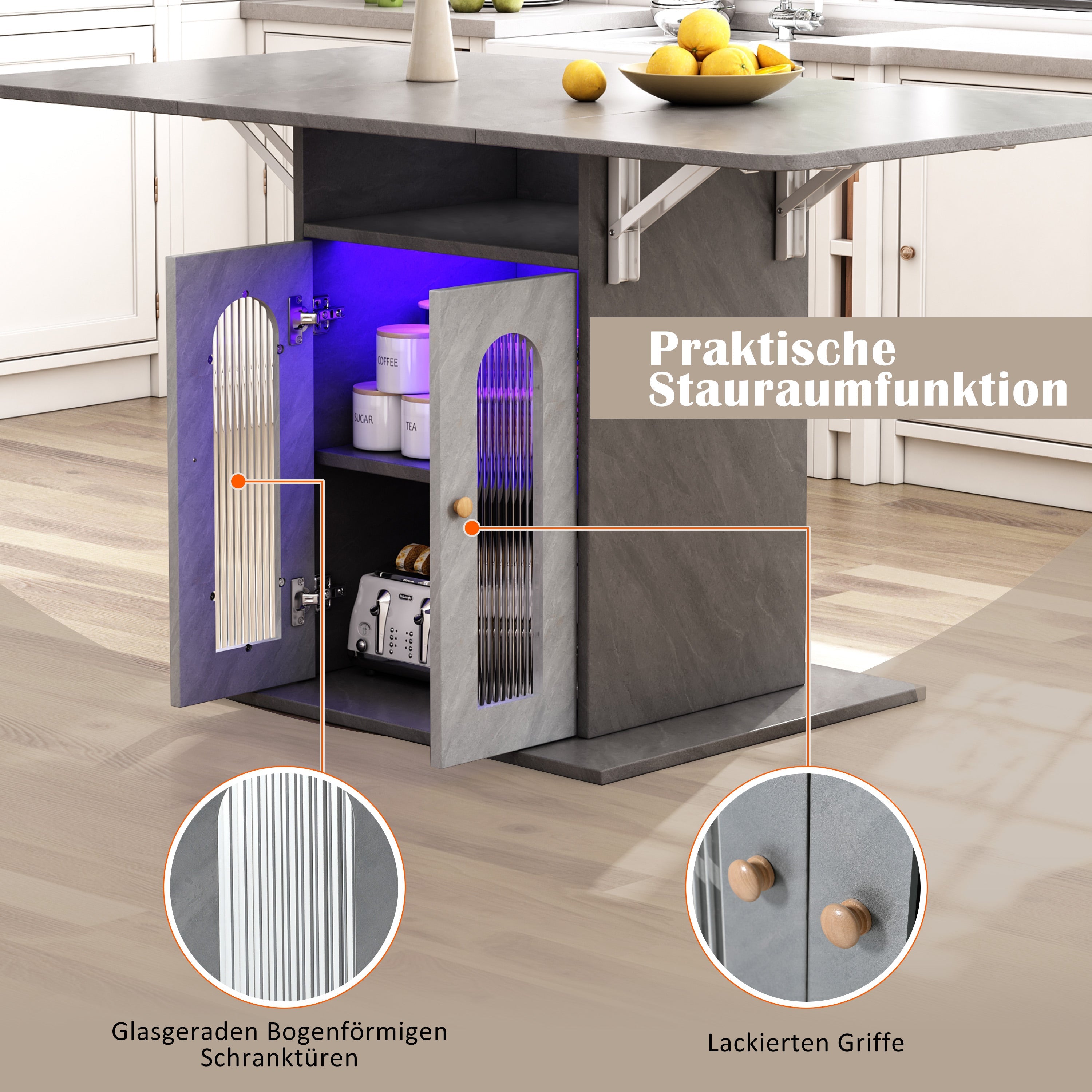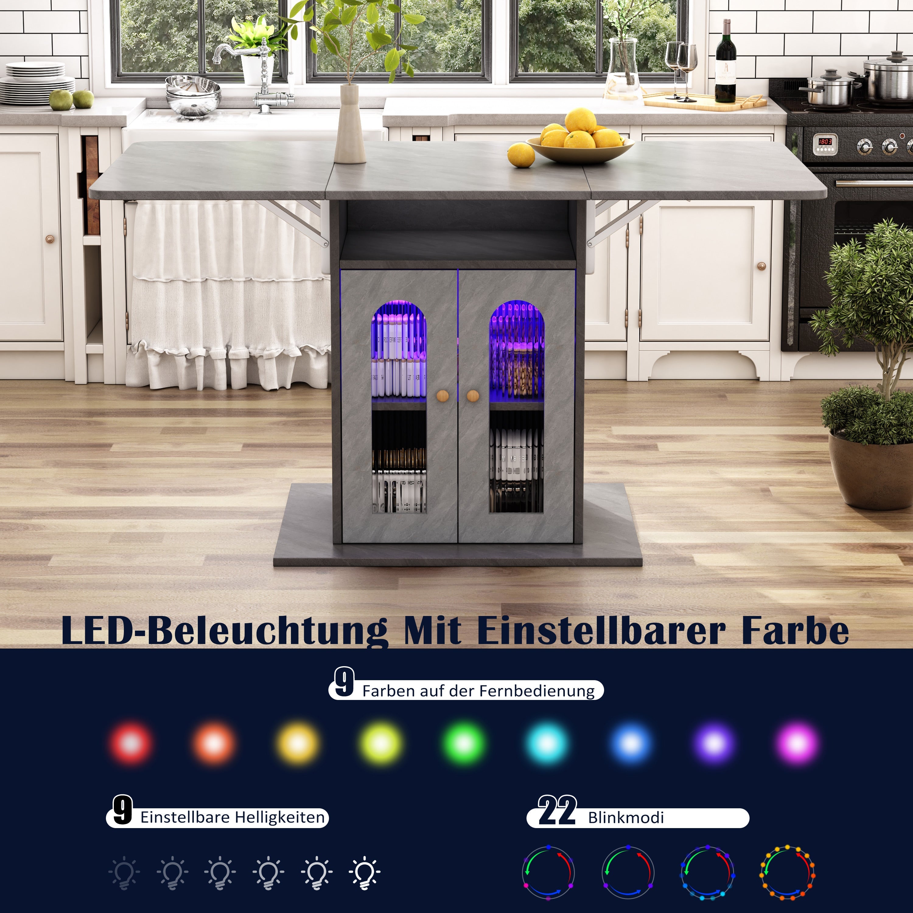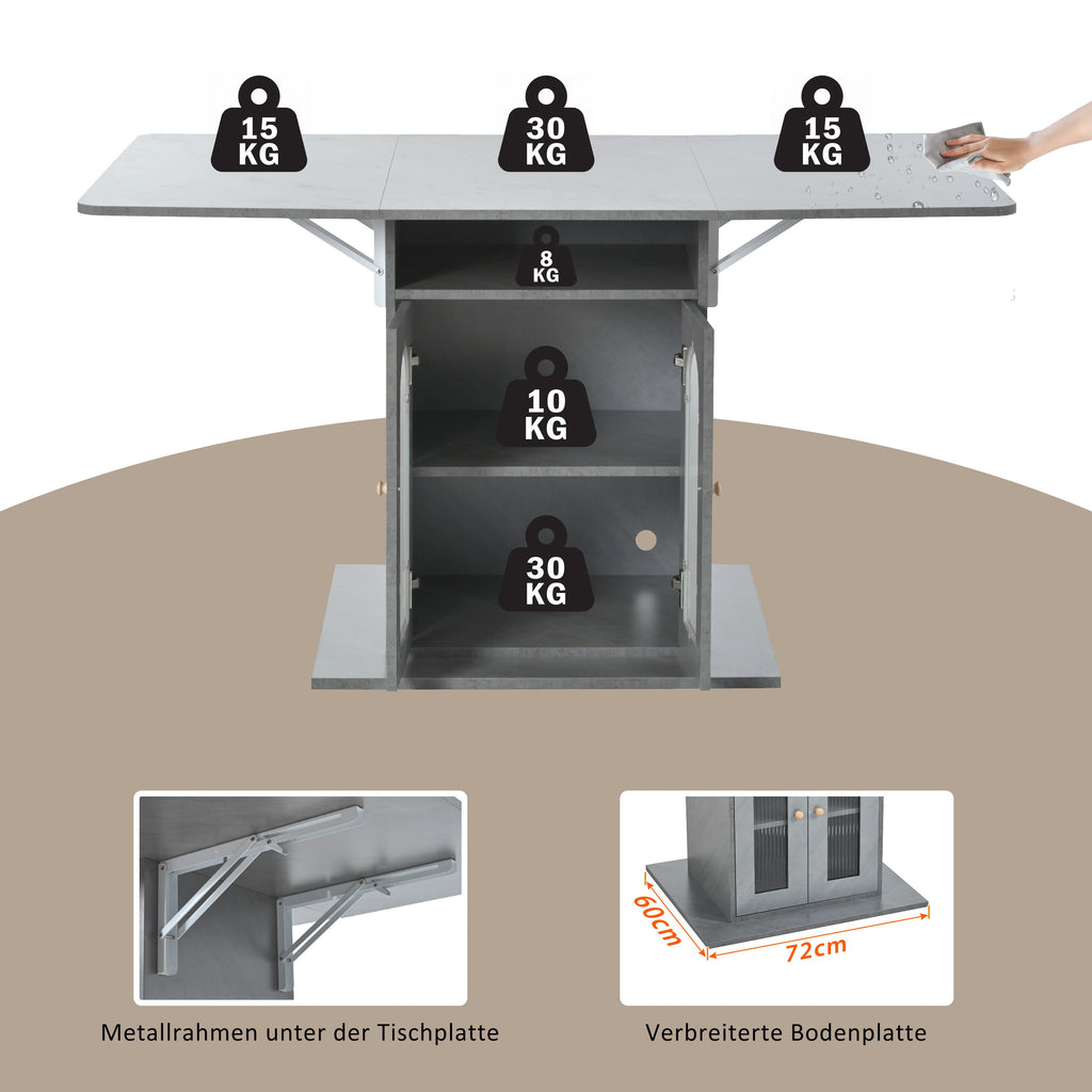 Folding Dining Table, Modern Extendable with LED Lighting & Storage, 140x78 cm