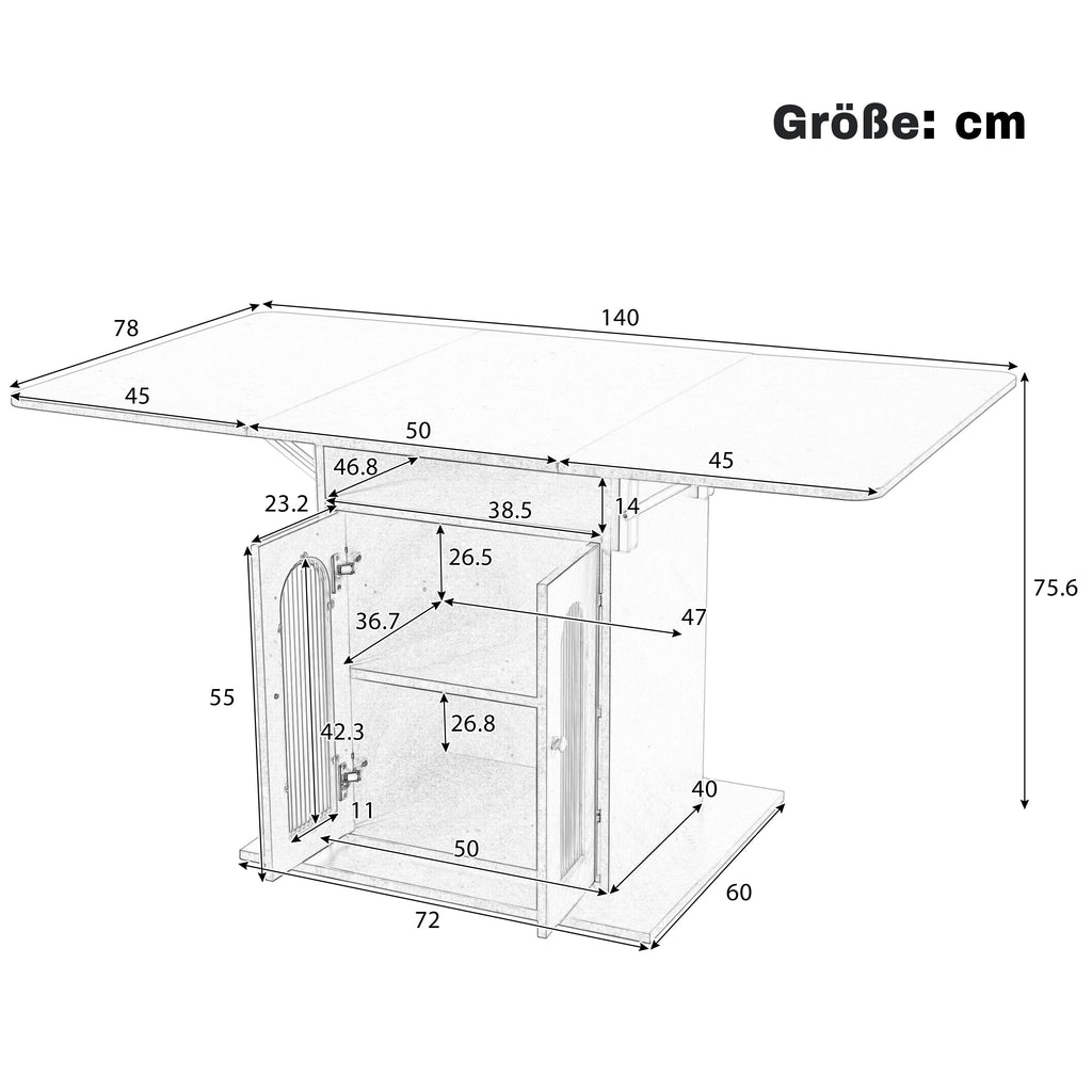 This table features a simple, modern design and fits perfectly into any kitchen or dining room. It includes side extension leaves that measure only 50 x 78 cm when folded, making it ideal for compact spaces. When needed, the tabletop can be easily extended to 140 x 78 cm to provide additional dining space.