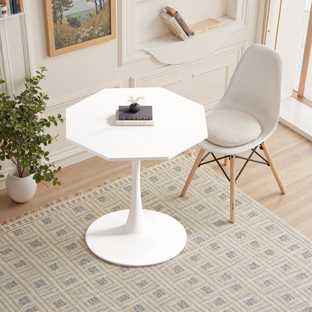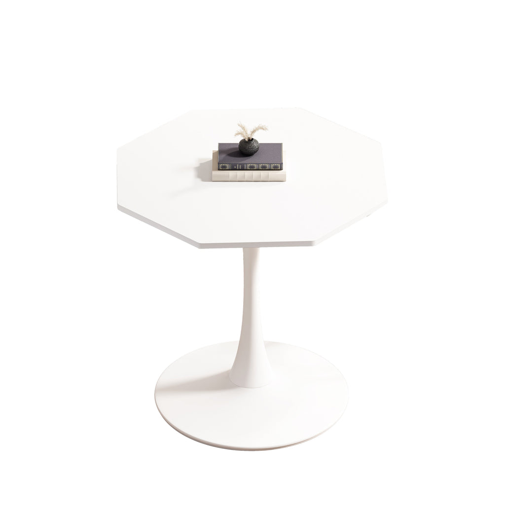 Modern Octagonal Coffee Table, MDF Top & Metal Base, White