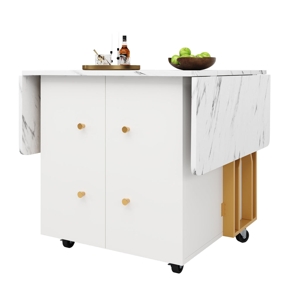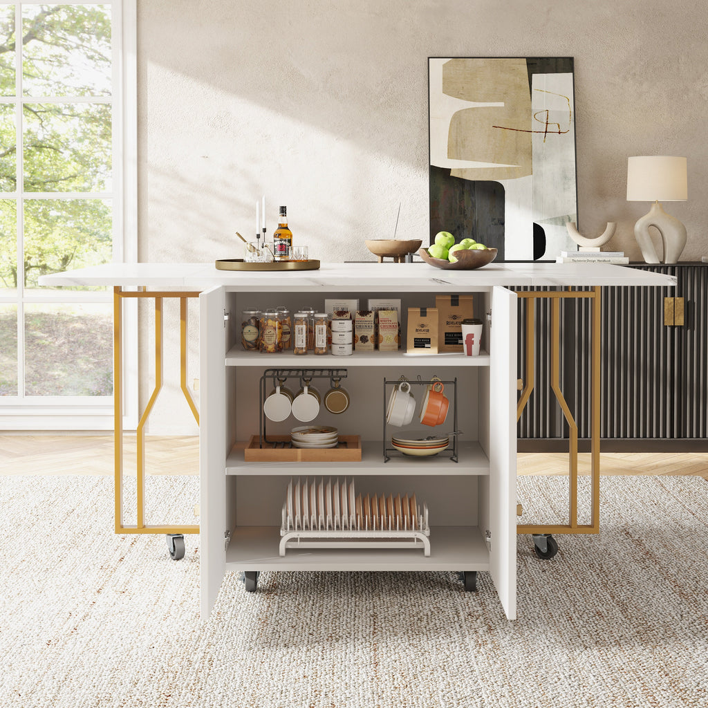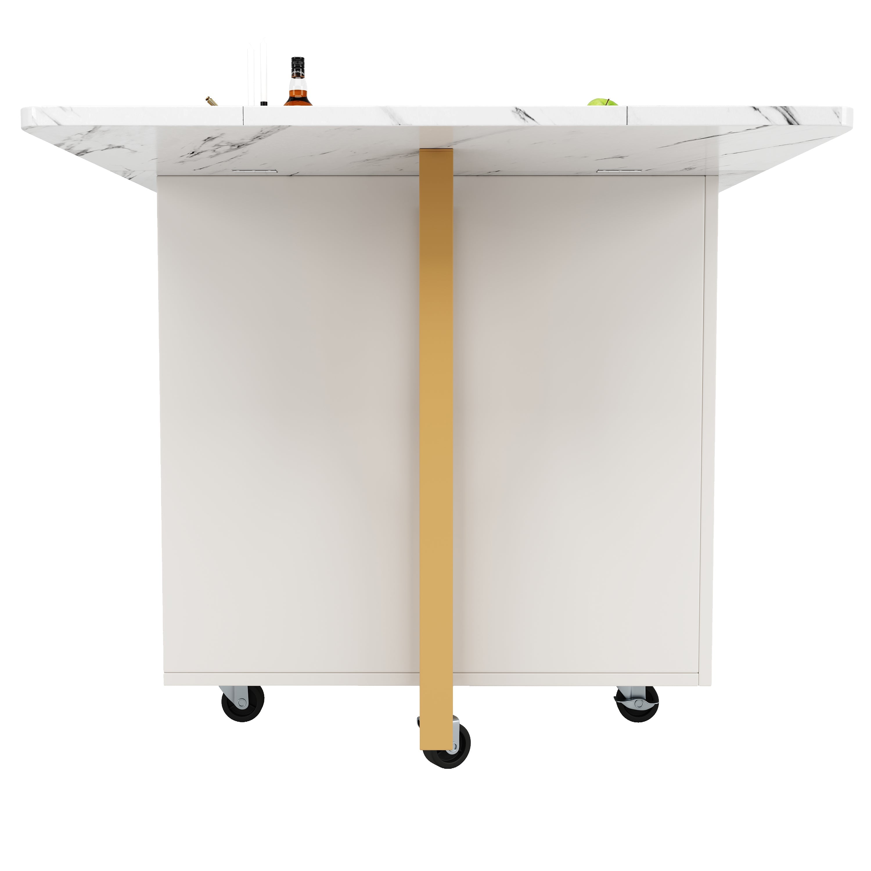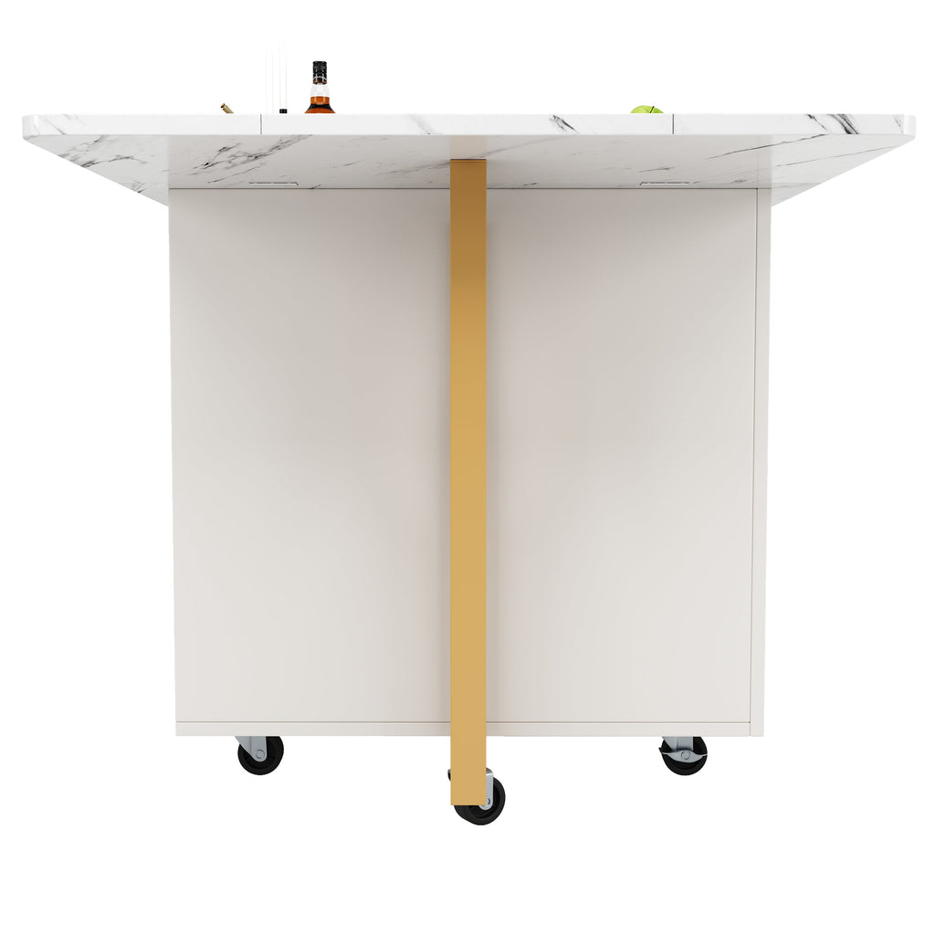 Portable Dining Table, Folding Marbled Top with Storage & Casters, Golden Legs