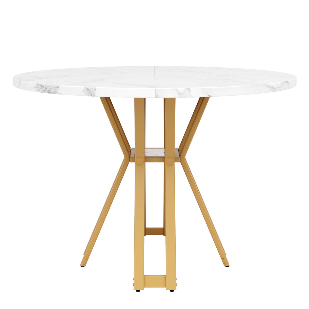 Round Dining Table, 100cm, 4-6 Person, Golden Legs, Marbled MDF