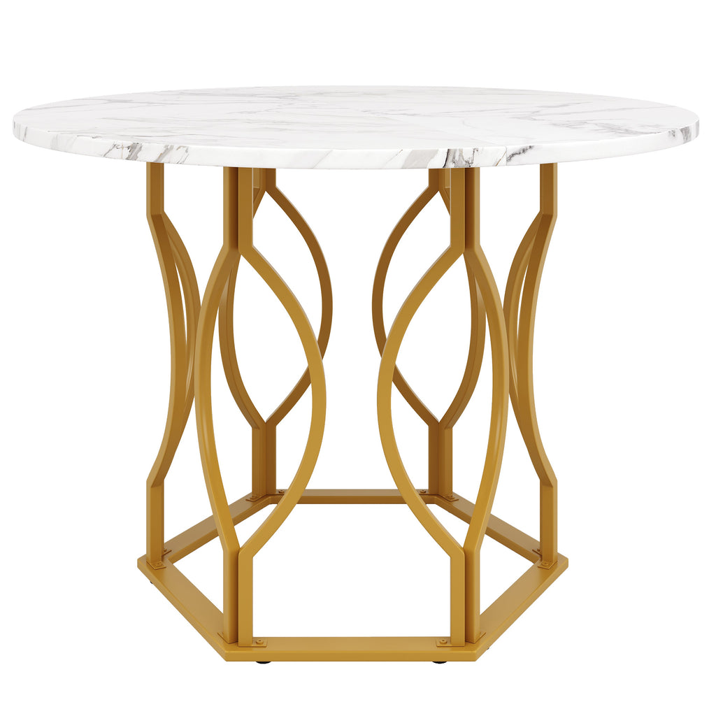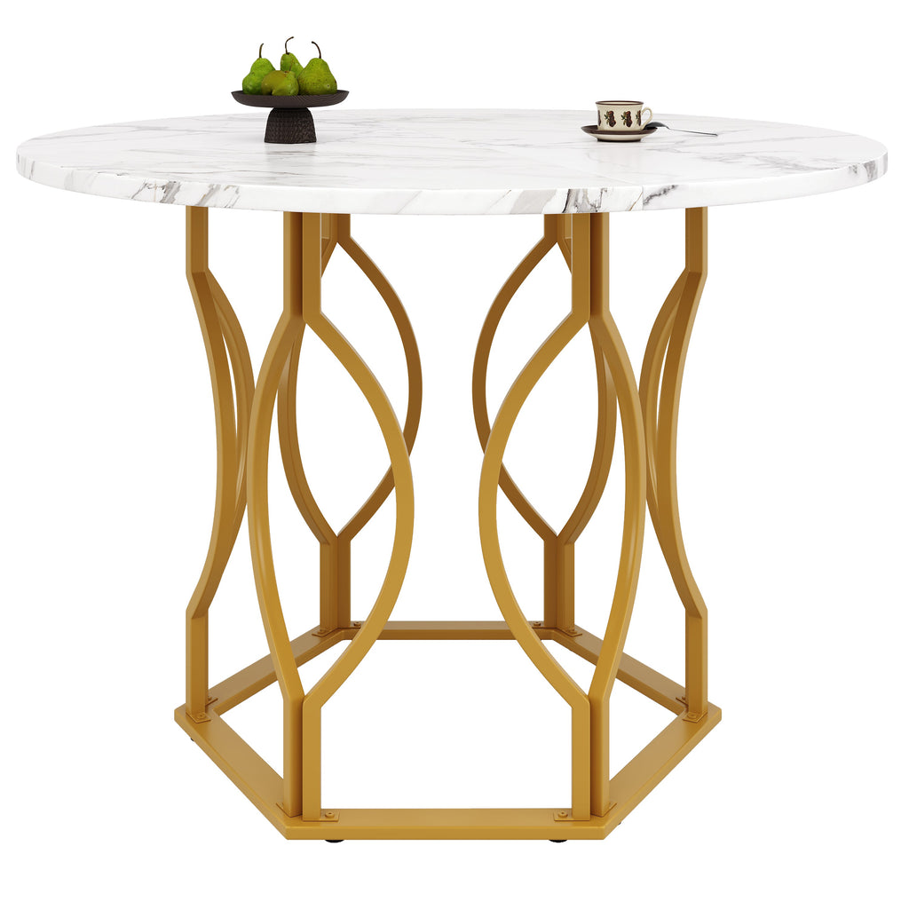 Round Dining Table (100x100x76cm), 4-Seater, Metal Legs, MDF Marbled Tabletop, Golden Legs