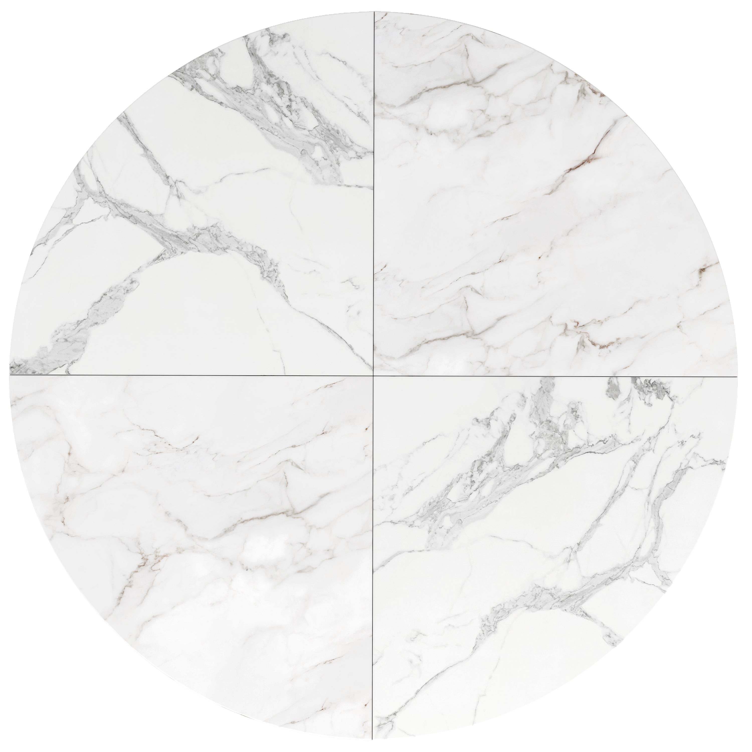 Round Dining Table, 4-6 Seater, Metal Legs, Marbled MDF with Gold Legs