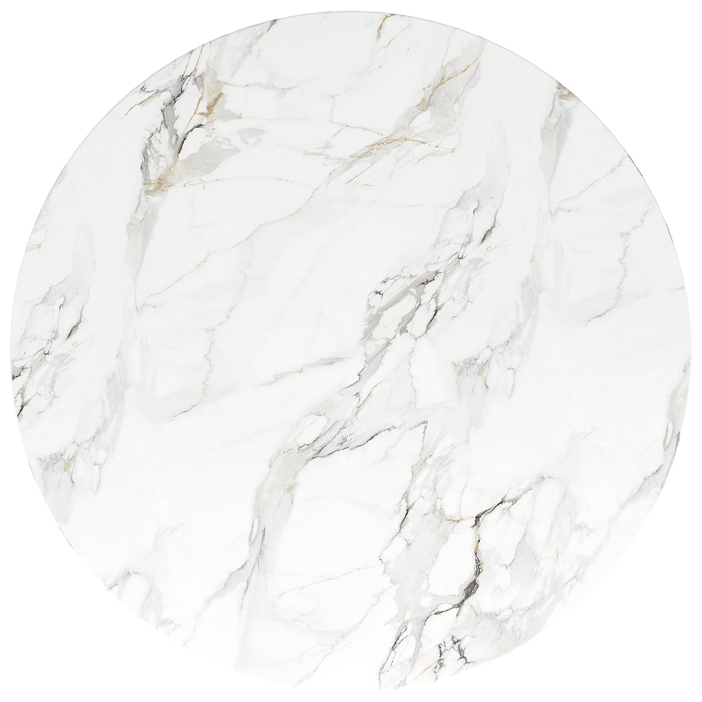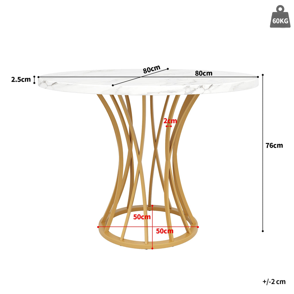 Round Dining Table, 80x80x76cm 4-6 Person MDF Marbled, Golden Legs