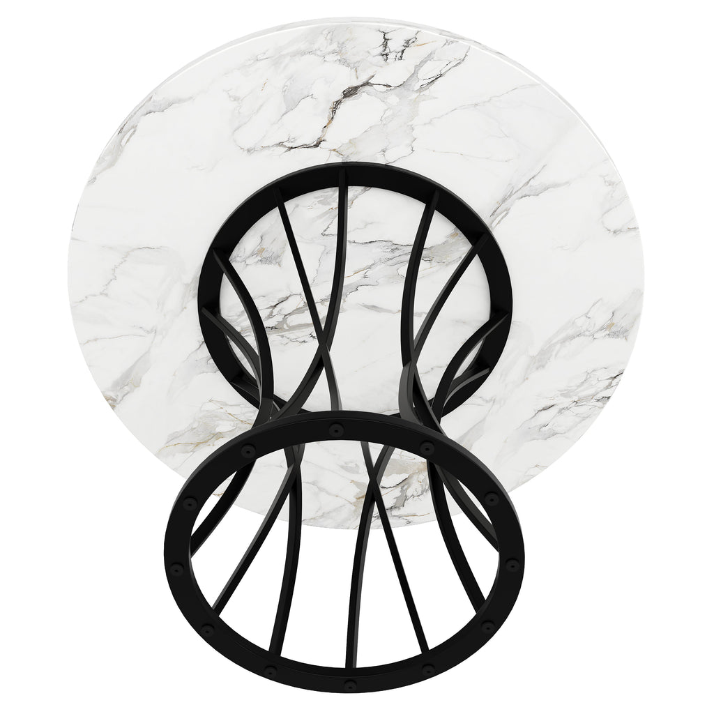 Round Dining Table, 80x80x76cm for 4-6 People, MDF Marbled Black