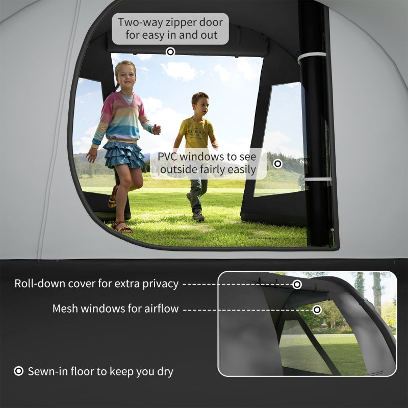 3-4 Man Tunnel Tent, Two Room Camping Tent with Carry Bag - Black
