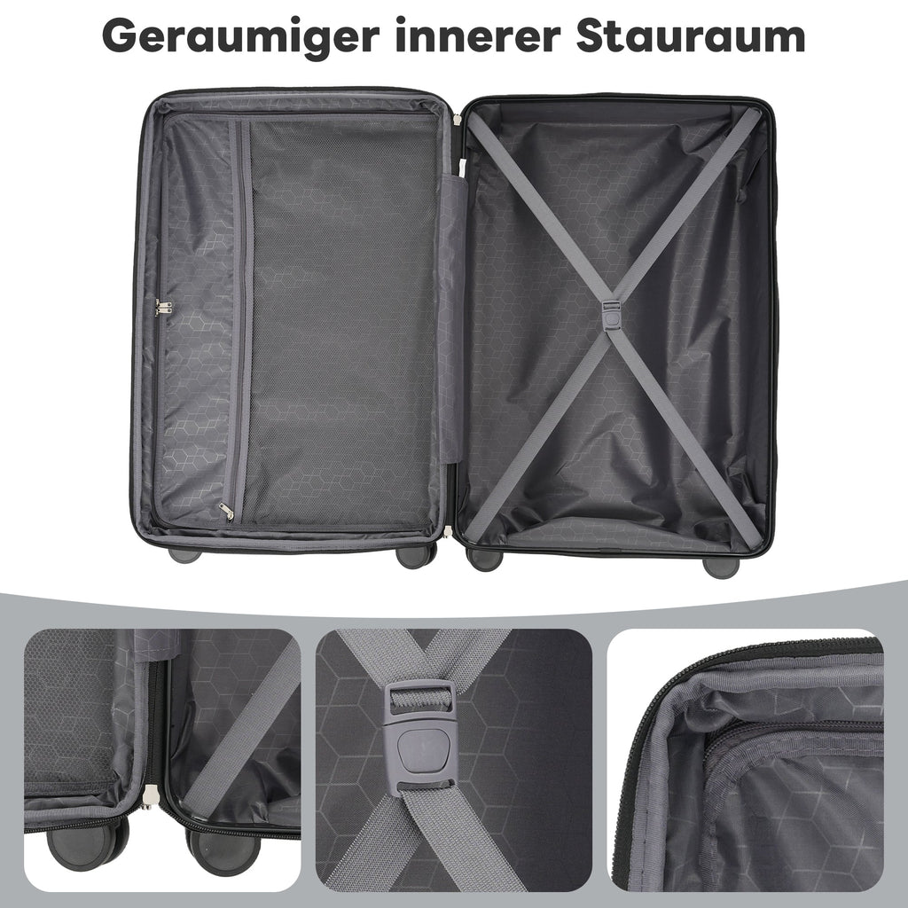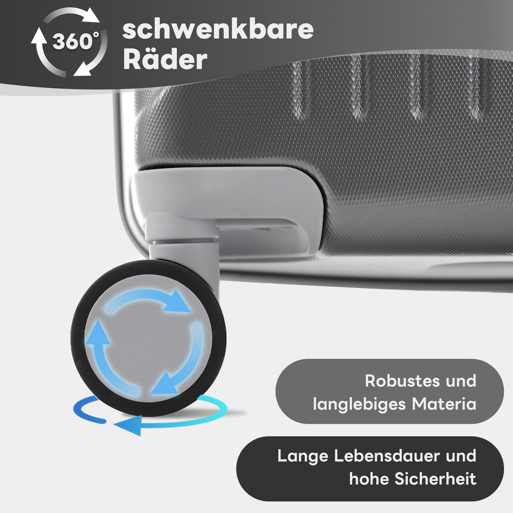 Robust and durable: Made of ABS material, lightweight and shock-resistant, combined with metal telescopic handles and 360° dual wheels for a smooth travel experience.