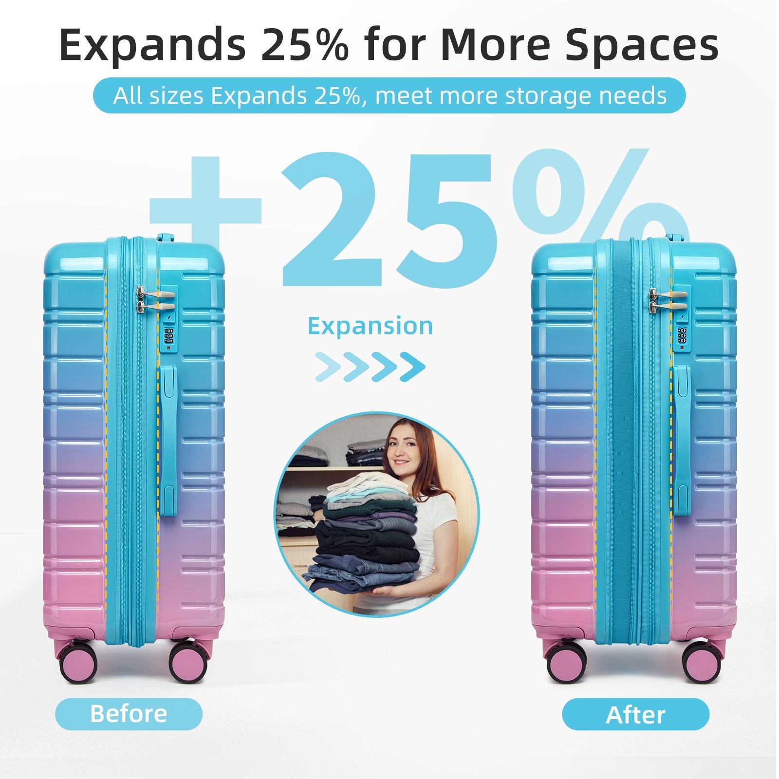 Engineered with high-impact ABS+PC material and enhanced by an advanced scratch-resistant coating, these luggage sets for women seamlessly blend rugged durability with a distinctive ribbed geometric texture design, guaranteeing instant visibility even in the busiest baggage claim areas.