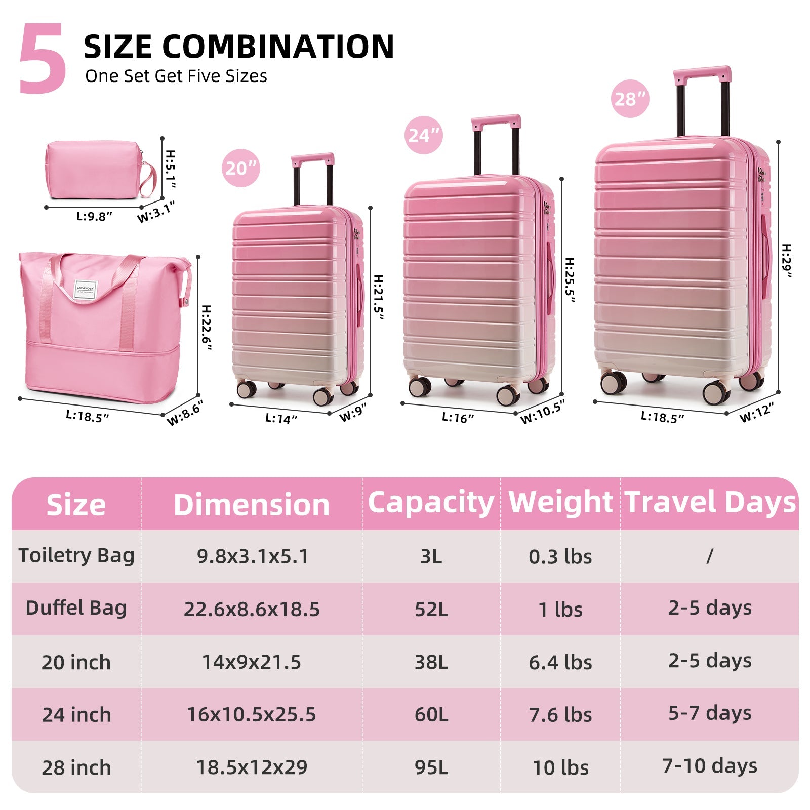 Luggage Sets 5 Piece Hardside Expandable Spinner Wheels, Peach Pink