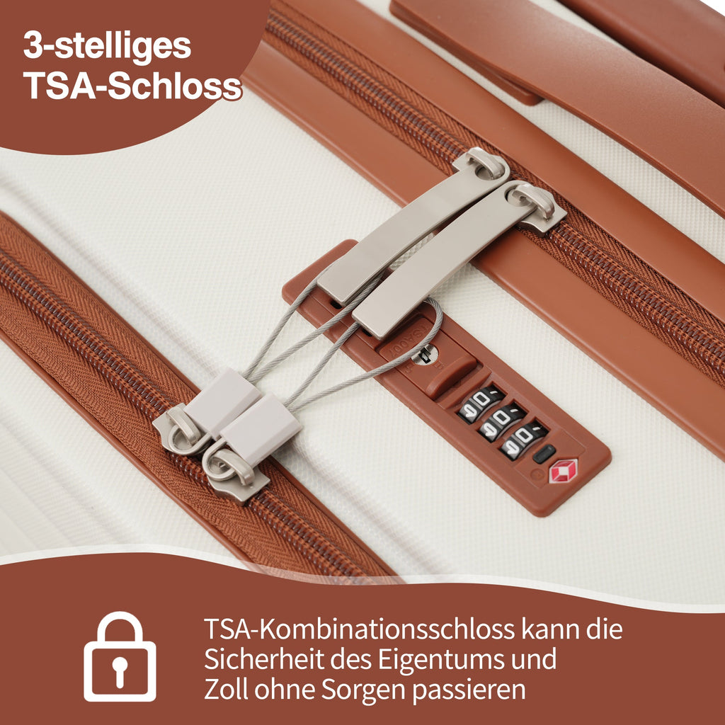This luggage set is made of high-quality, scratch-resistant ABS material that is durable, lightweight, yet robust, effectively protecting your belongings. The integrated TSA lock provides additional security during your trip, while the 360° dual-wheel system allows for flexible and smooth rolling on a variety of surfaces. The sturdy metal telescopic handles are designed for comfortable use by all travelers.