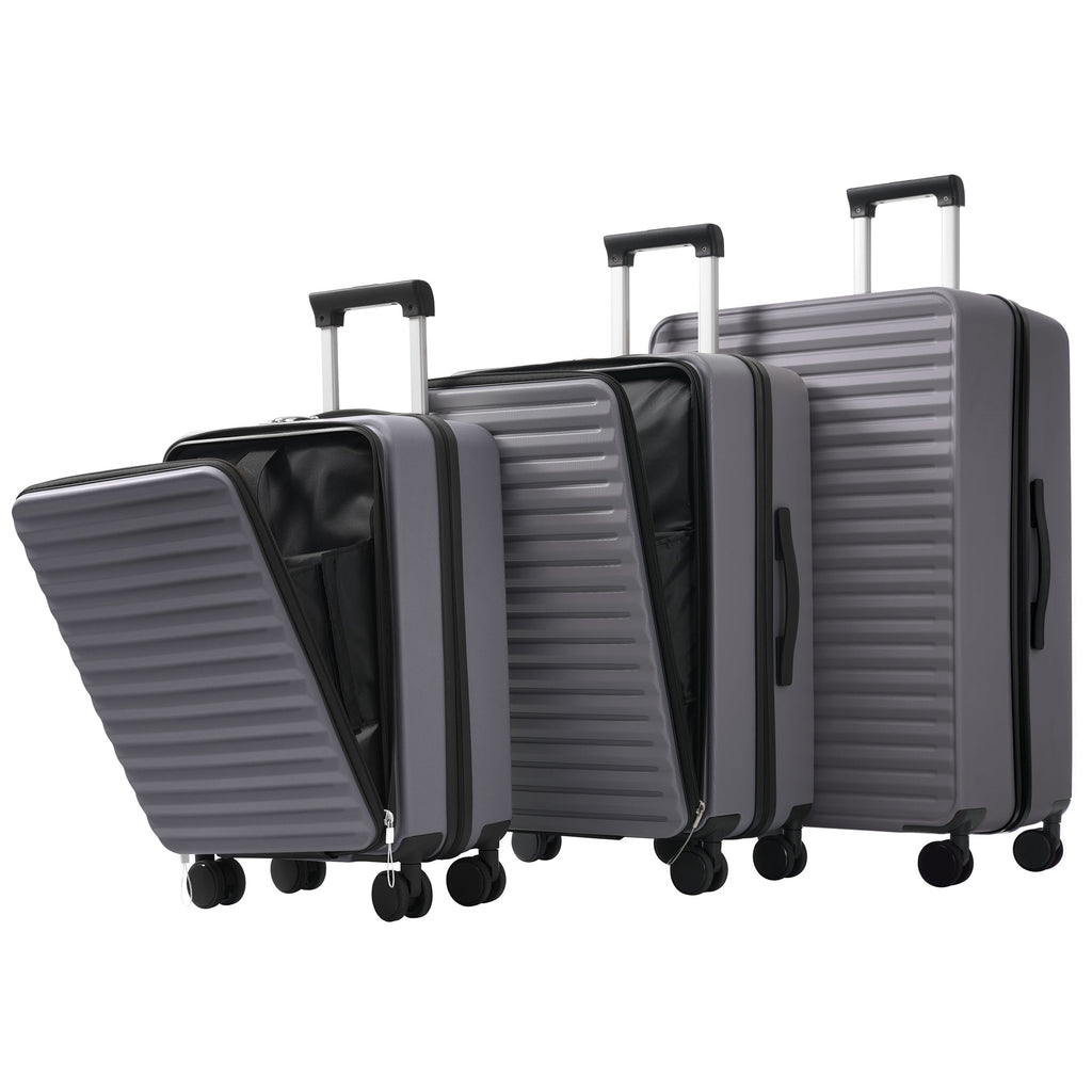 Three-piece Luggage Set - Front-opening, Cup Holders, TSA Lock, 360° Wheels, ABS Material