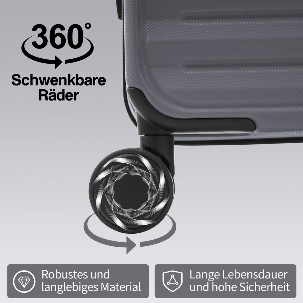This luggage set is made of high-quality ABS material that is scratch-resistant, durable, lightweight, yet robust, effectively protecting your belongings. The TSA lock provides additional security during your trip, while the 360° dual-wheel system allows for flexible and smooth rolling on a variety of surfaces. The sturdy metal telescopic handles are suitable for all types of users.