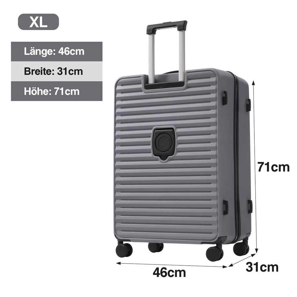 This three-piece luggage set, with its innovative front-opening design and foldable cup holders, is the ideal choice for travelers. The three sizes, M (20 inches), L (24 inches), and XL (28 inches), are suitable for short trips, family outings, or long-distance journeys. The M and L suitcases feature specially designed front pockets that allow you to easily access or store frequently used items without having to open the entire suitcase, increasing the efficiency and convenience of your trip.