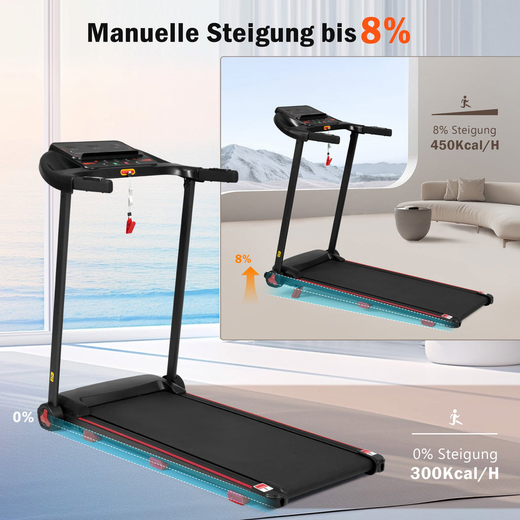 Treadmill for Home, Foldable 8% Incline 3.0 HP 120kg Max Load, Black