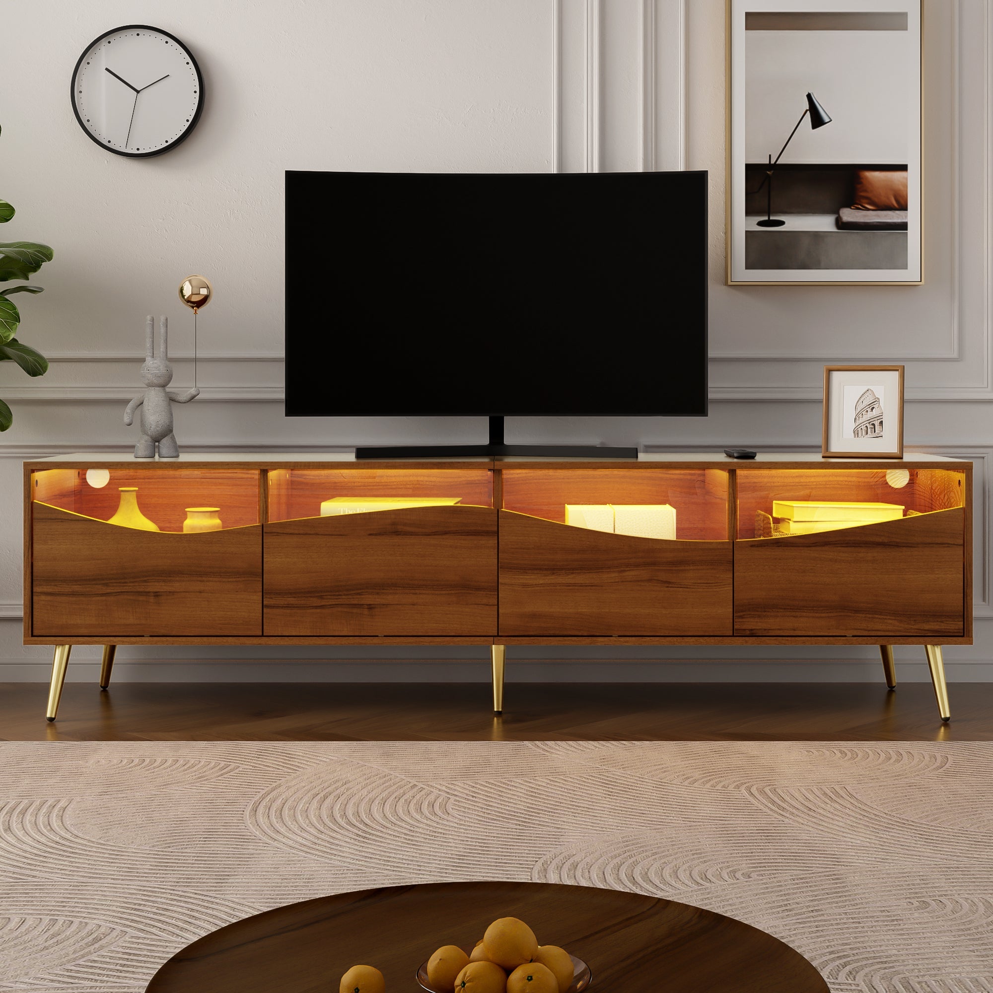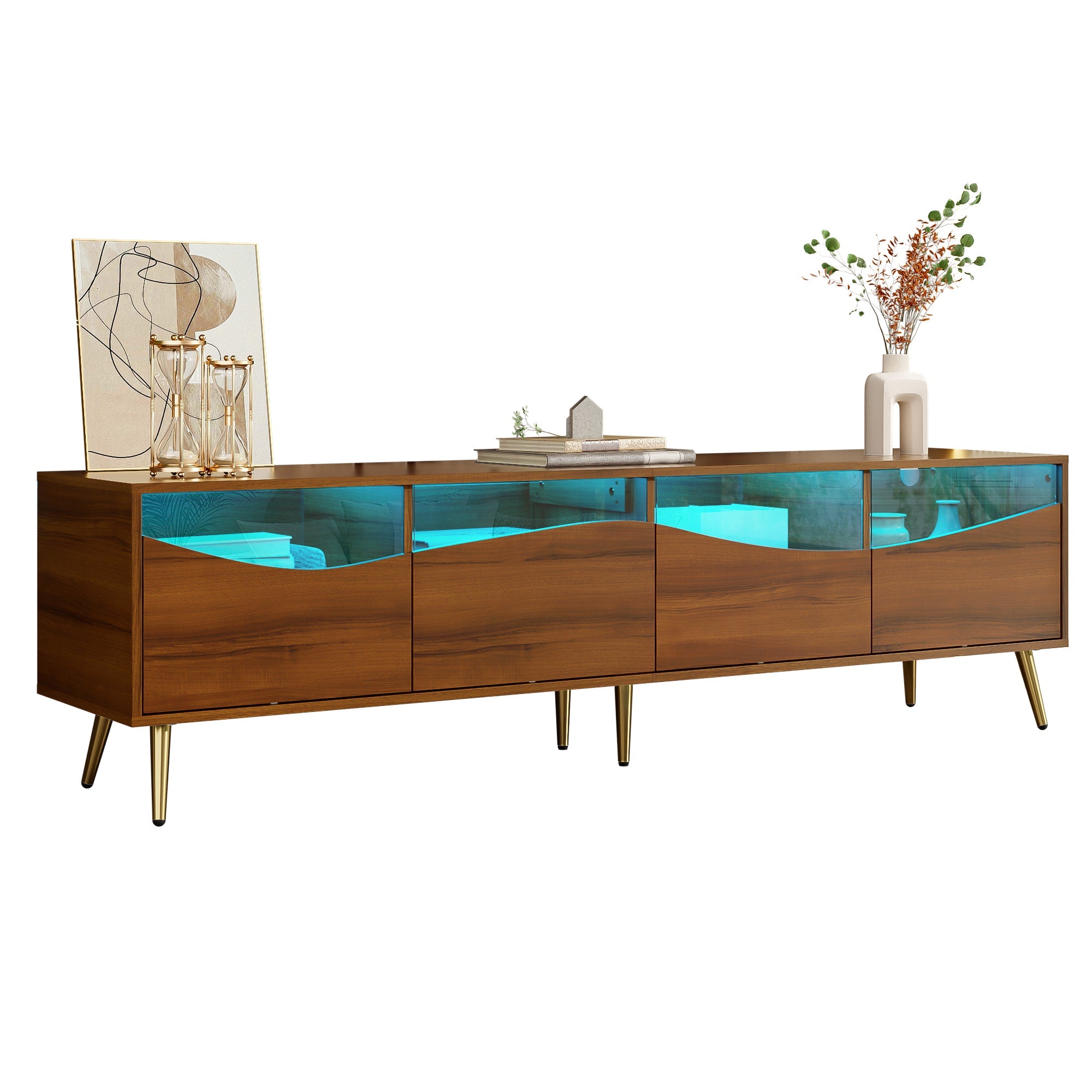 Modern TV Cabinet 180cm LED Lighting Storage, Wood Color/Gold Metal