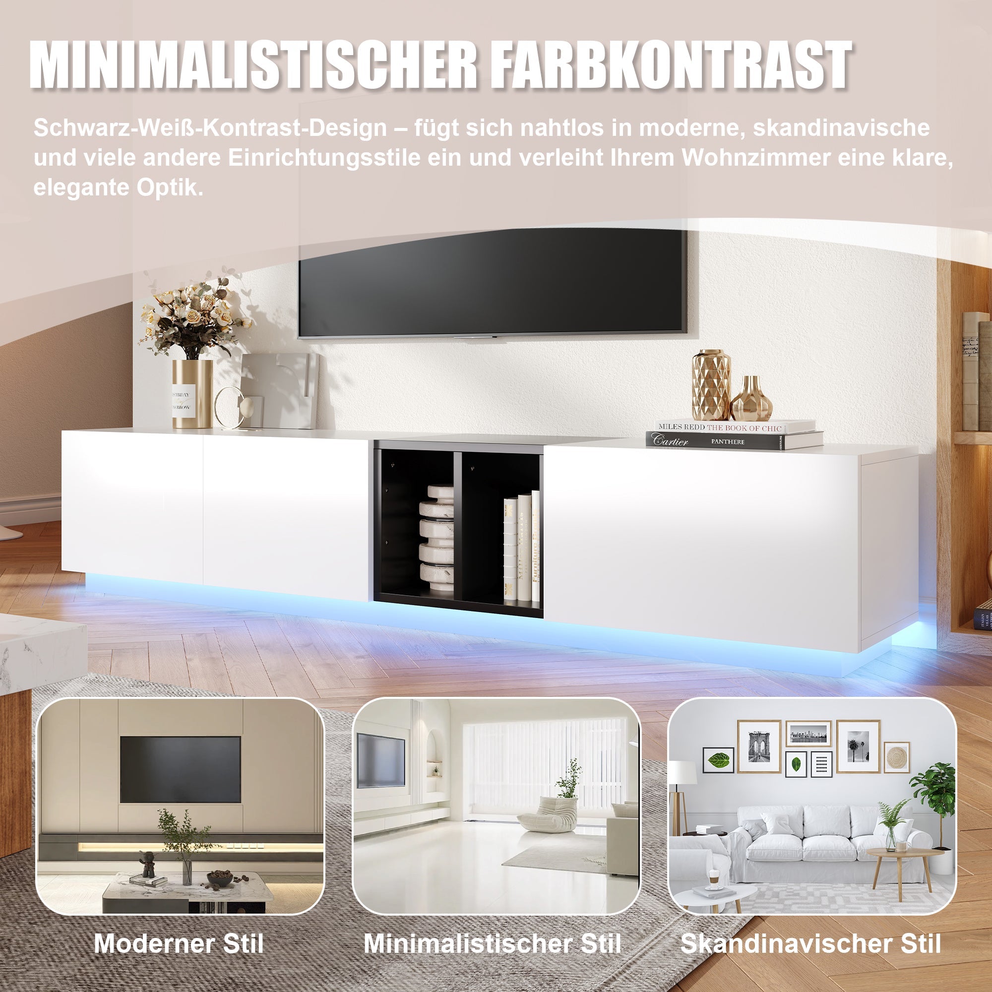 This TV stand is more than just a piece of furniture—it is a design statement. The black and white contrast brings calm and order to the room and harmonizes with any modern interior. In everyday use, it impresses with its well-designed storage solutions and durable materials—a piece of furniture that combines style and functionality.