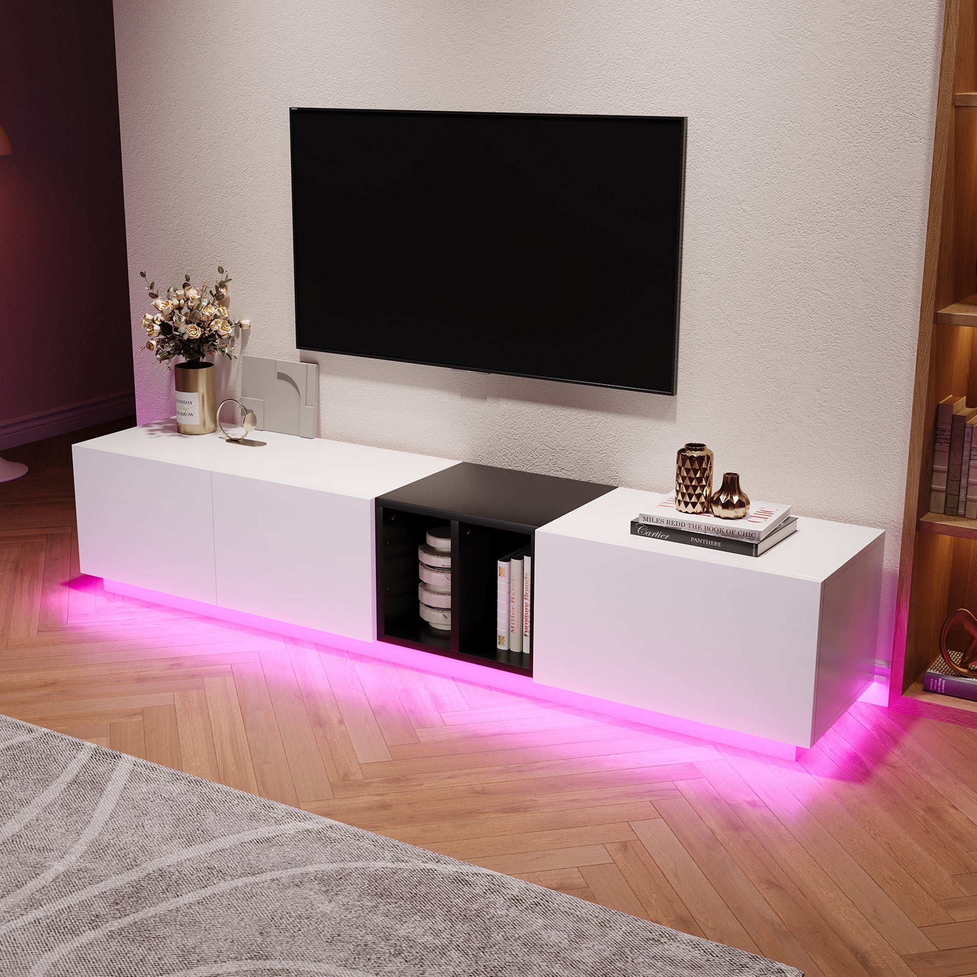 Modern TV Cabinet with Drawers and Open Compartments, Black and White
