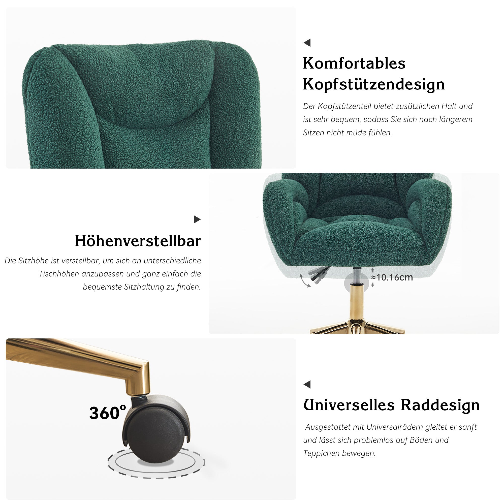 005 Swivel Chair, Height-Adjustable for Home Office, Teddy Fabric, Green