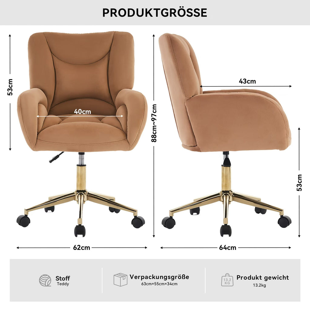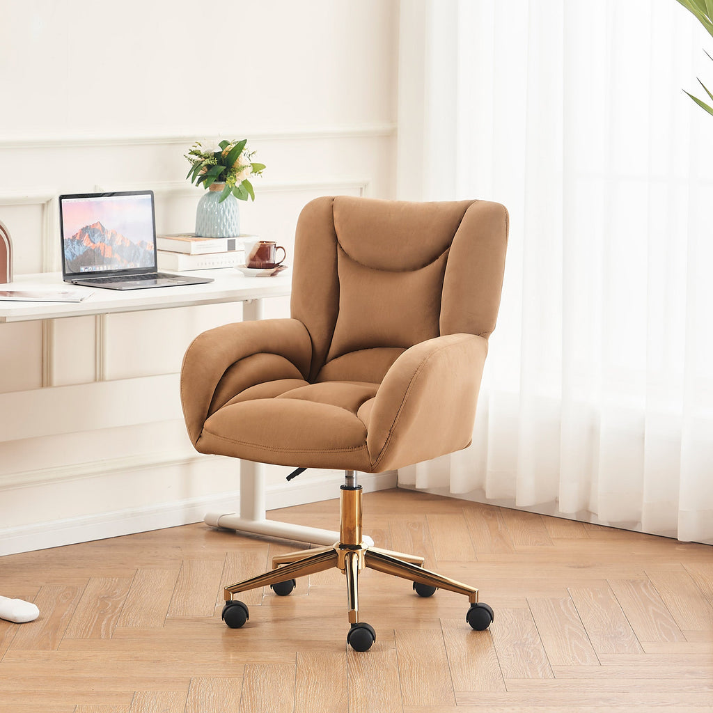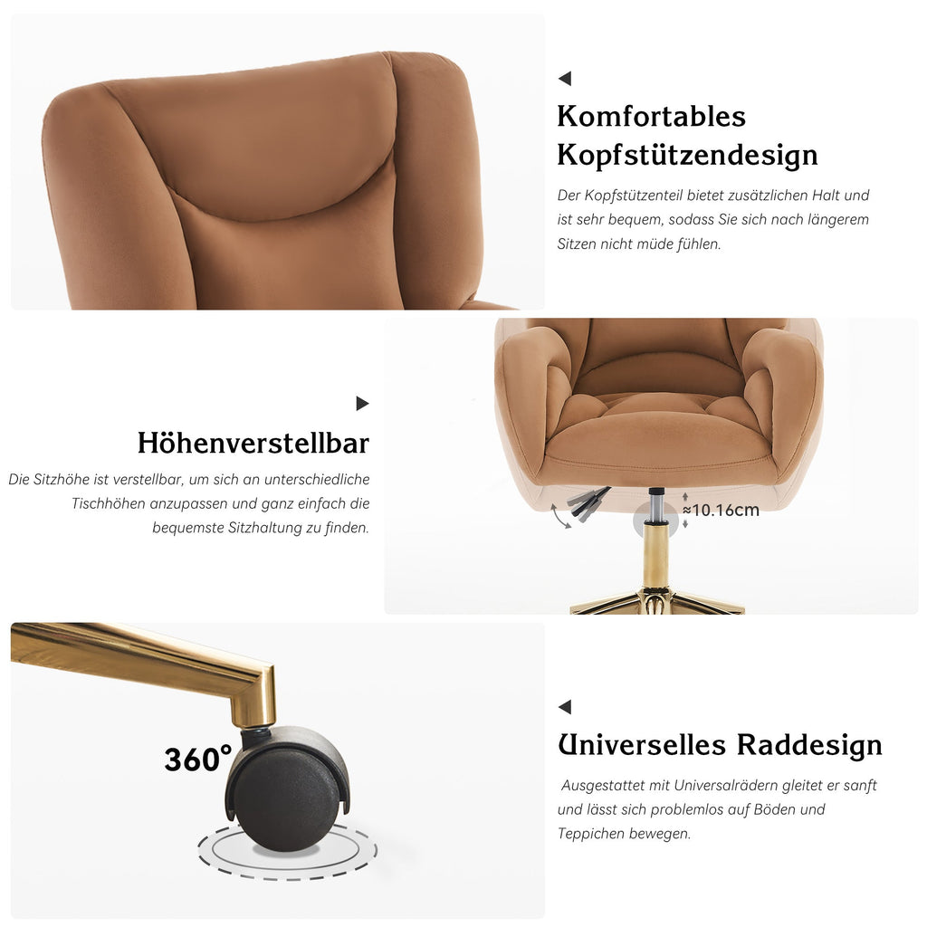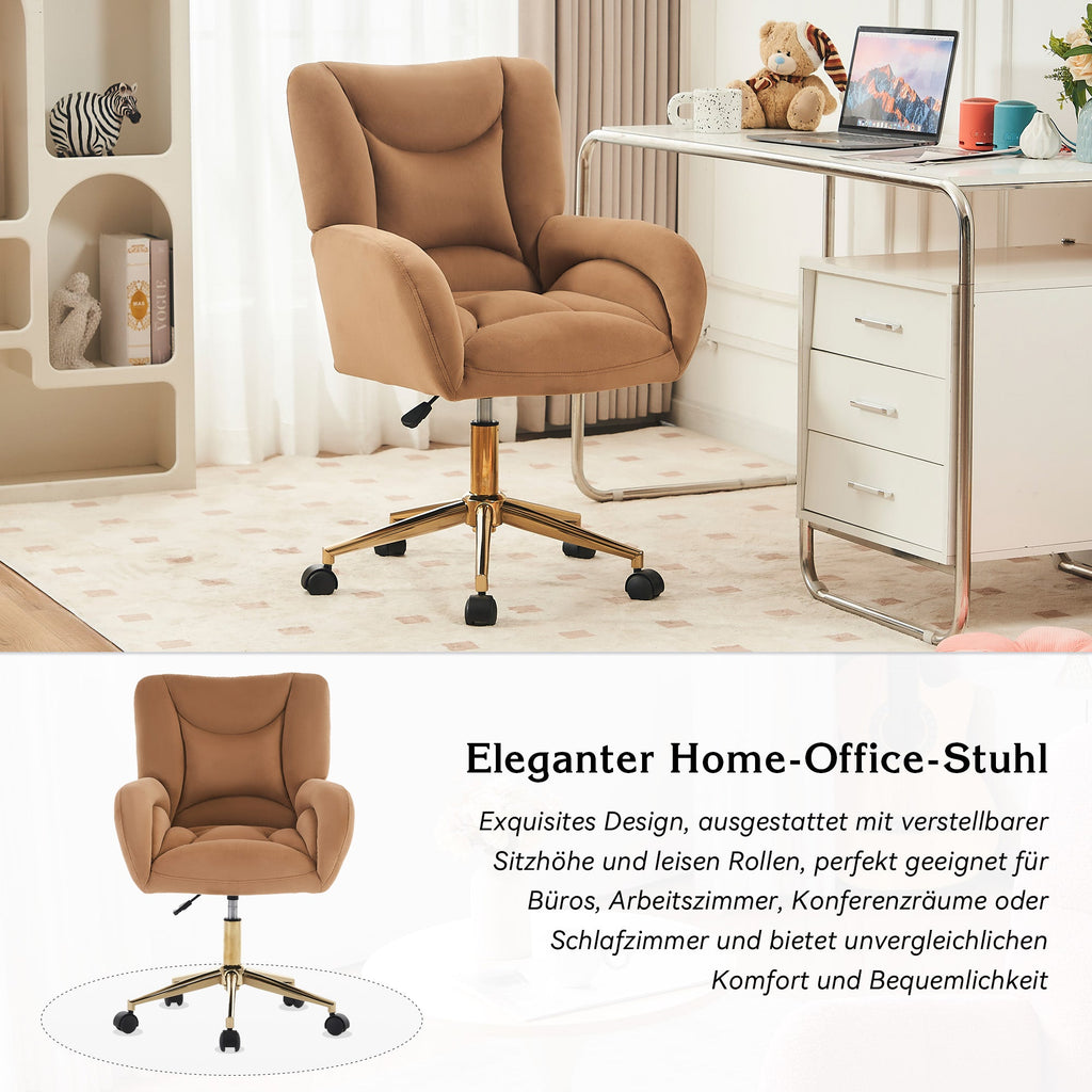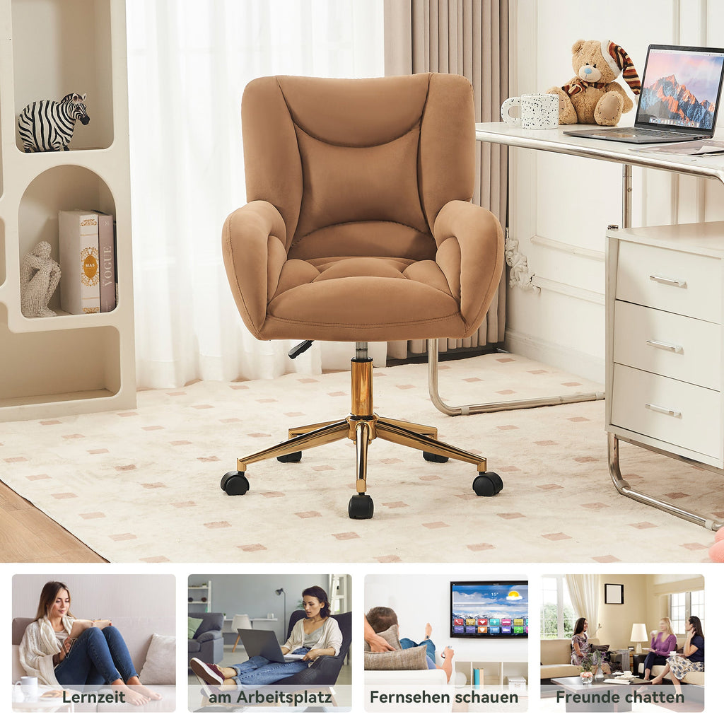 005 Swivel Chair, Height Adjustable for Home Office, Velvet Fabric Brown