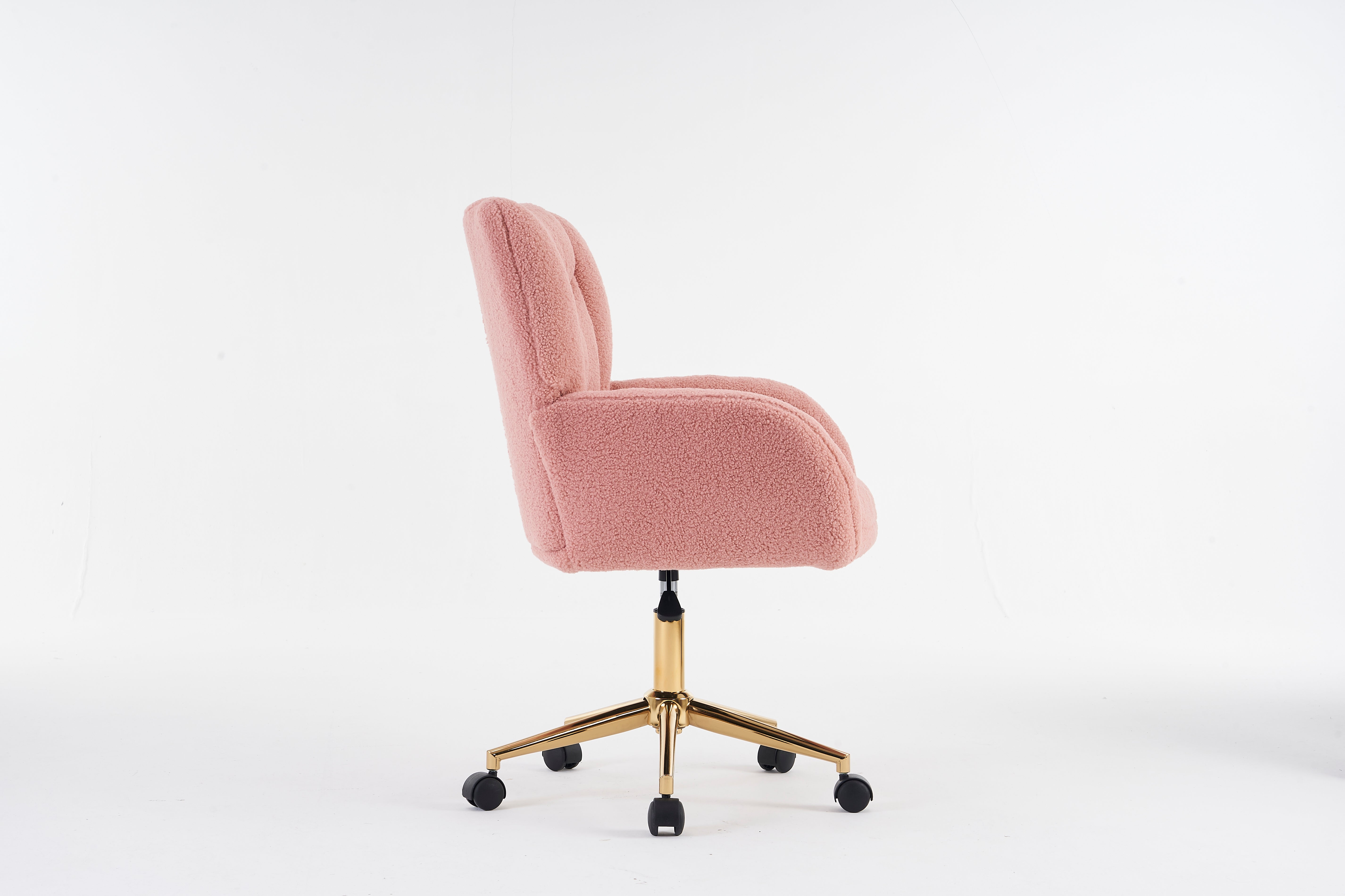 005 Swivel Chair, Height-Adjustable Home Office with Gold Legs, Teddy Fabric Pink