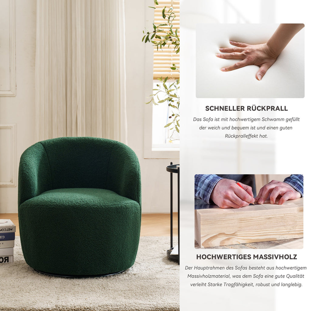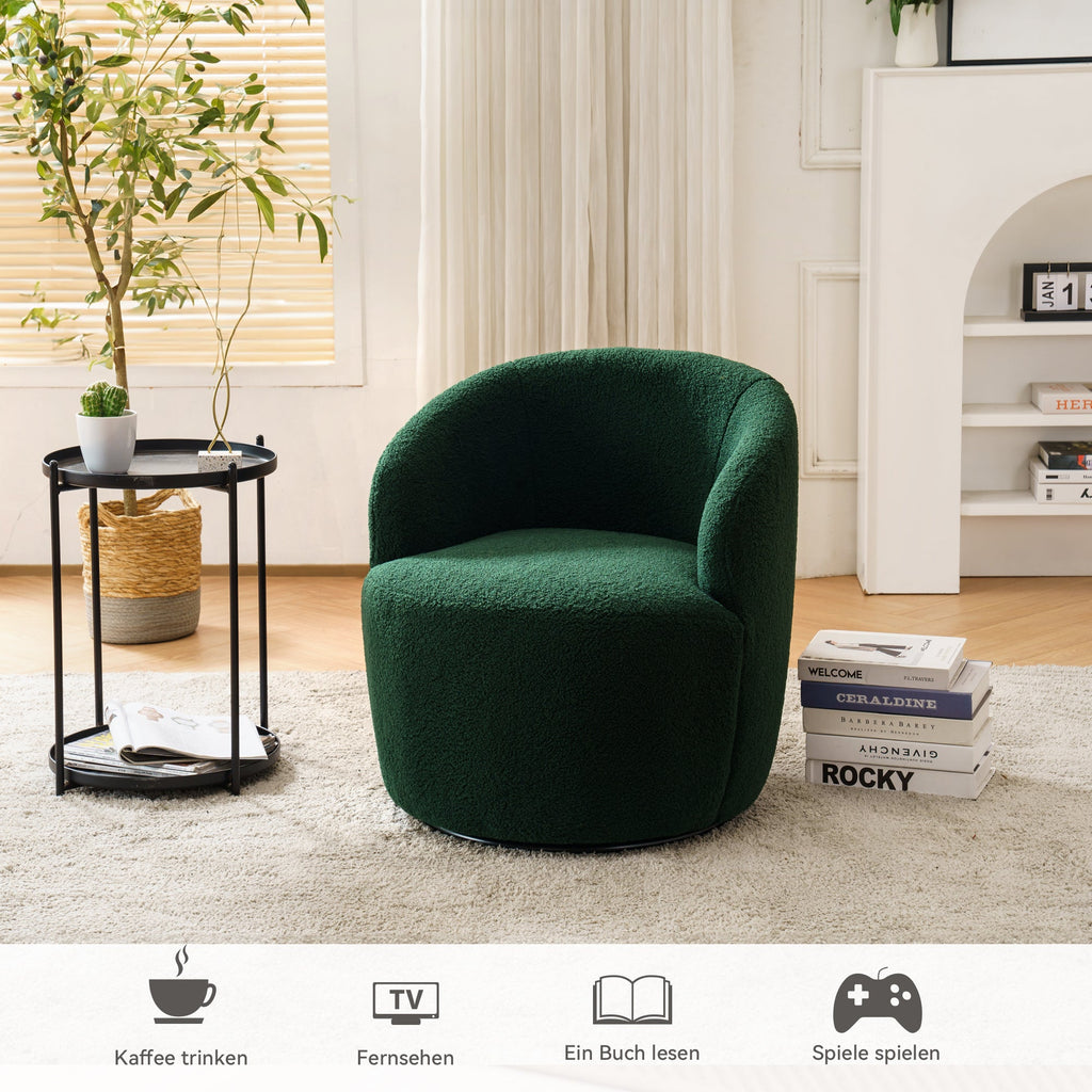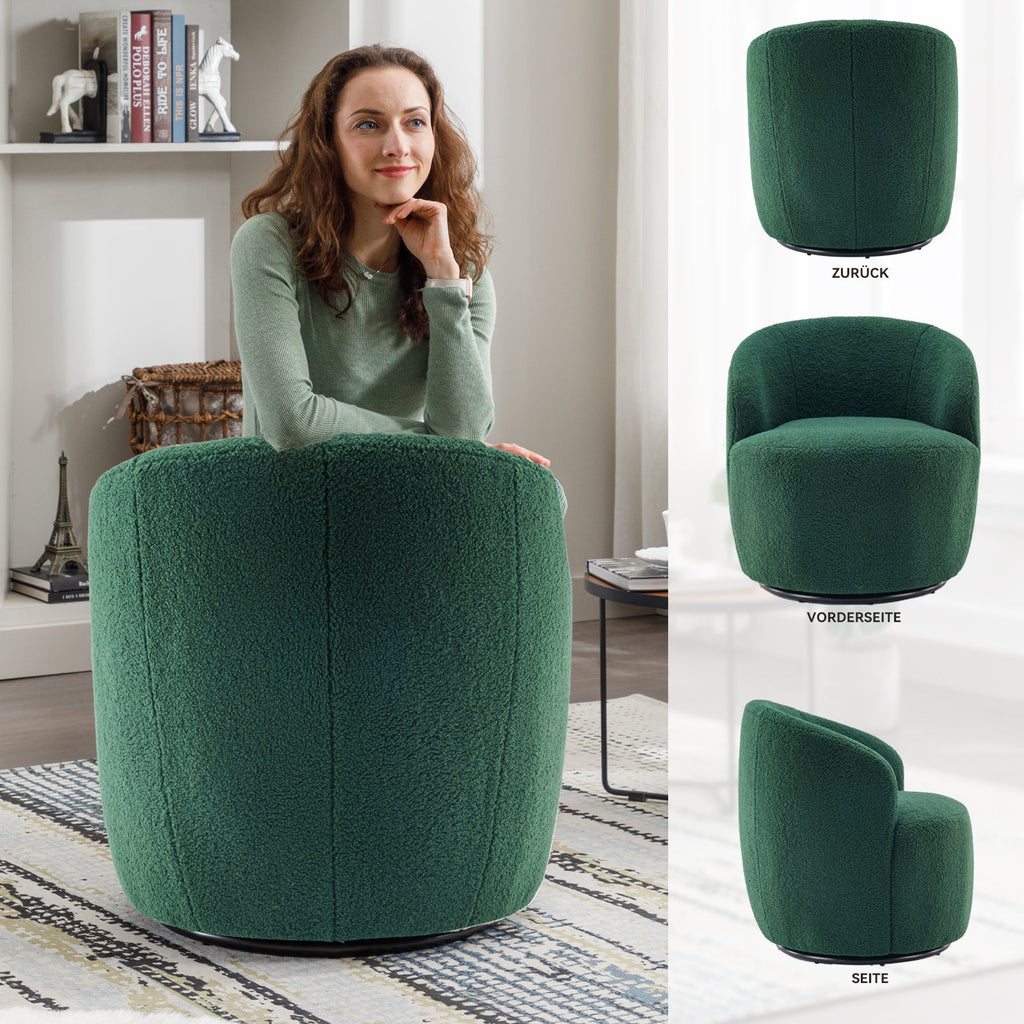 008S Swivel Accent Chair, Teddy Fabric, Barrel Seat, Green