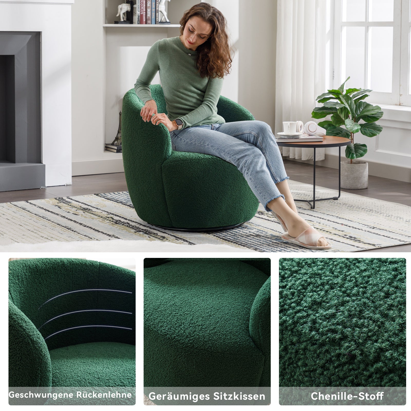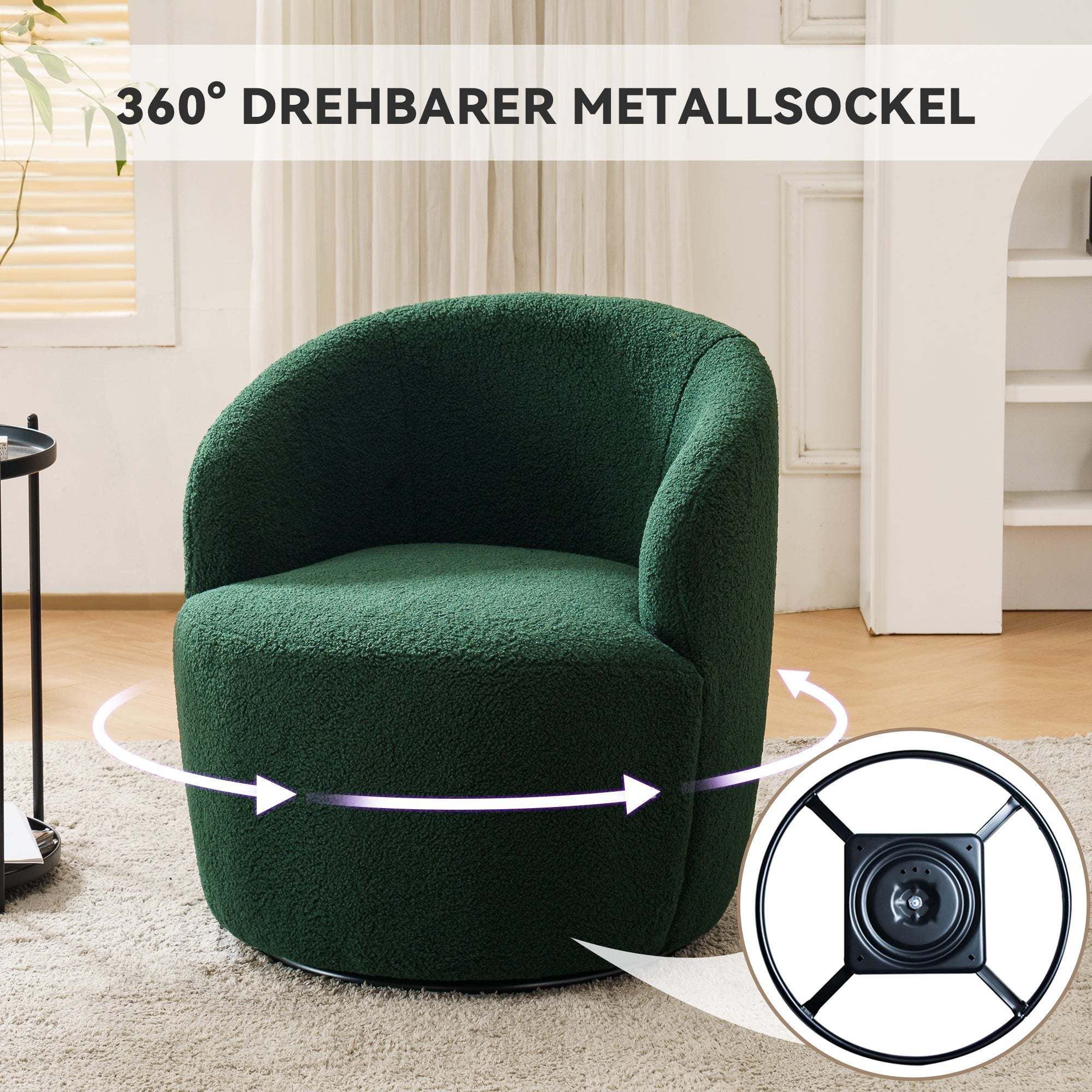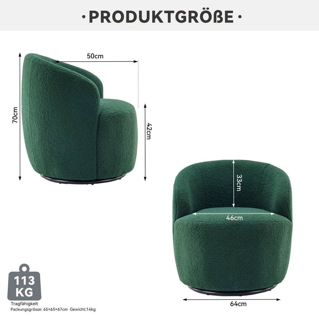 008S Swivel Accent Chair, Teddy Fabric, Barrel Seat, Green