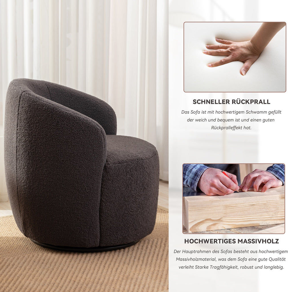 EN:1. Cozy Comfort: Experience ultimate relaxation with this chair, crafted from soft teddy fabric that feels like a gentle hug. Its rounded, egg-shaped design not only offers a unique visual appeal but also enhances your home's ambiance, providing warmth and comfort from the moment you sit down.