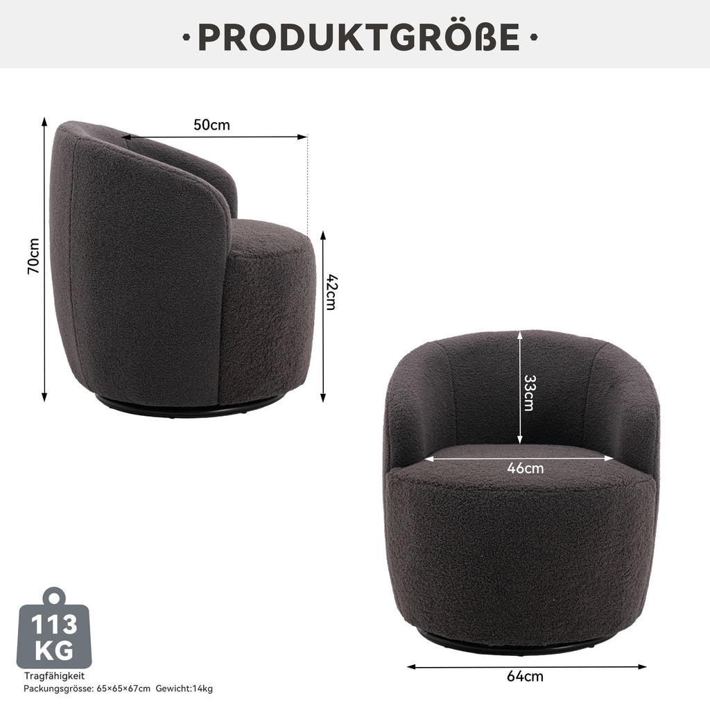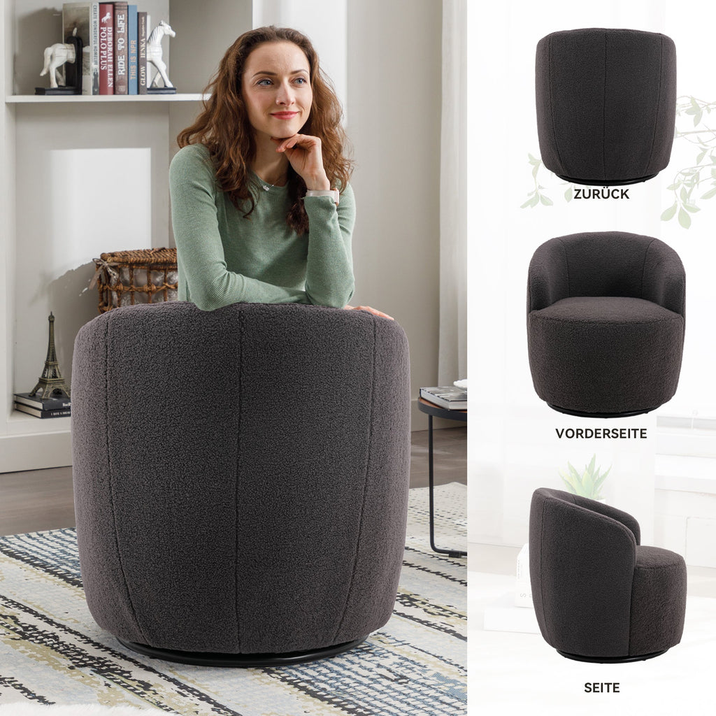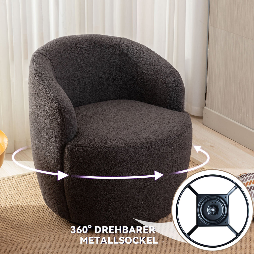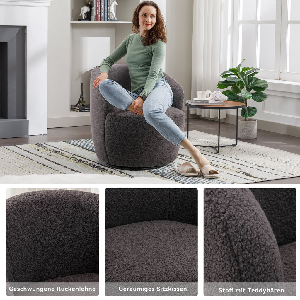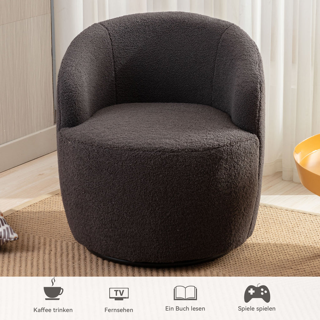 008S Swivel Accent Chair, Teddy Fabric with Metal Ring, Dark Grey