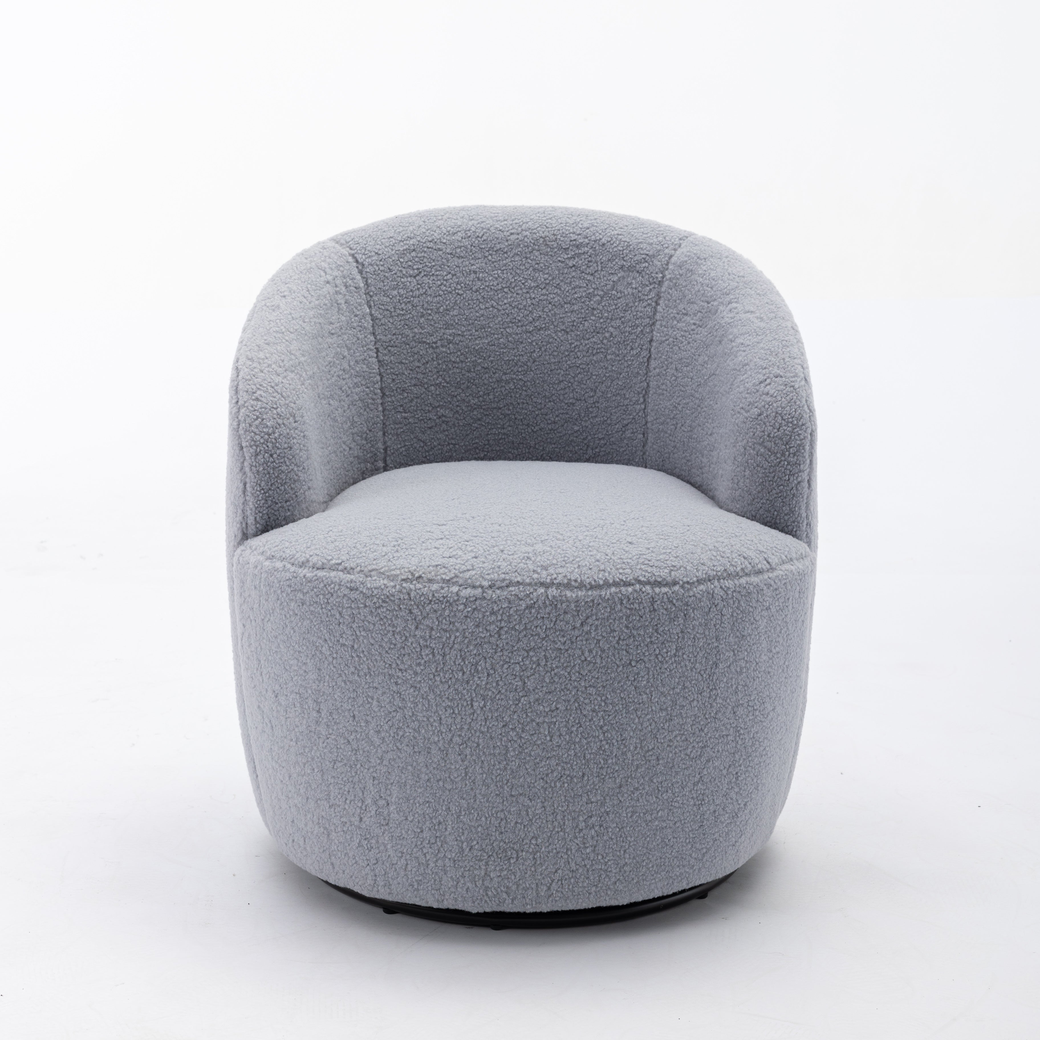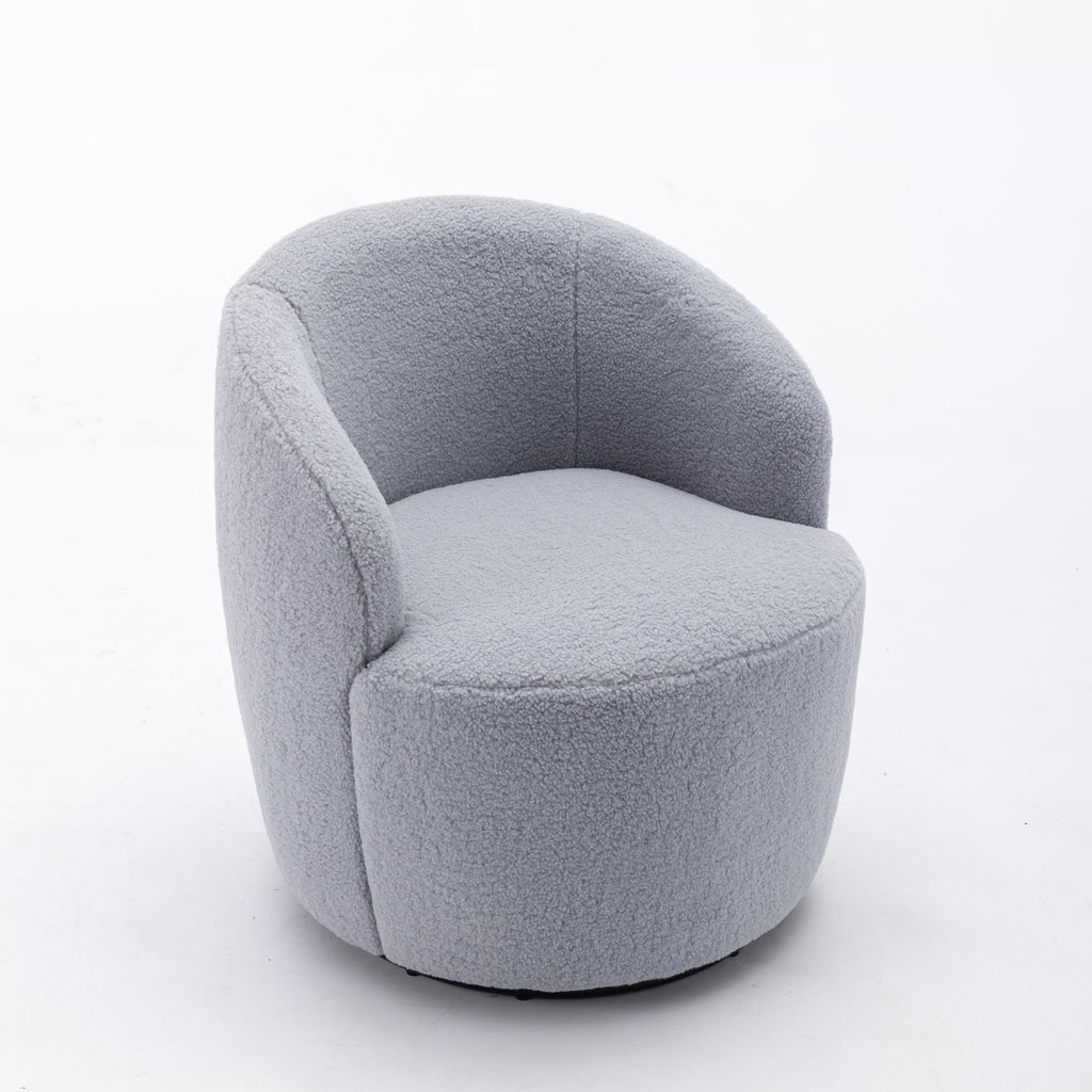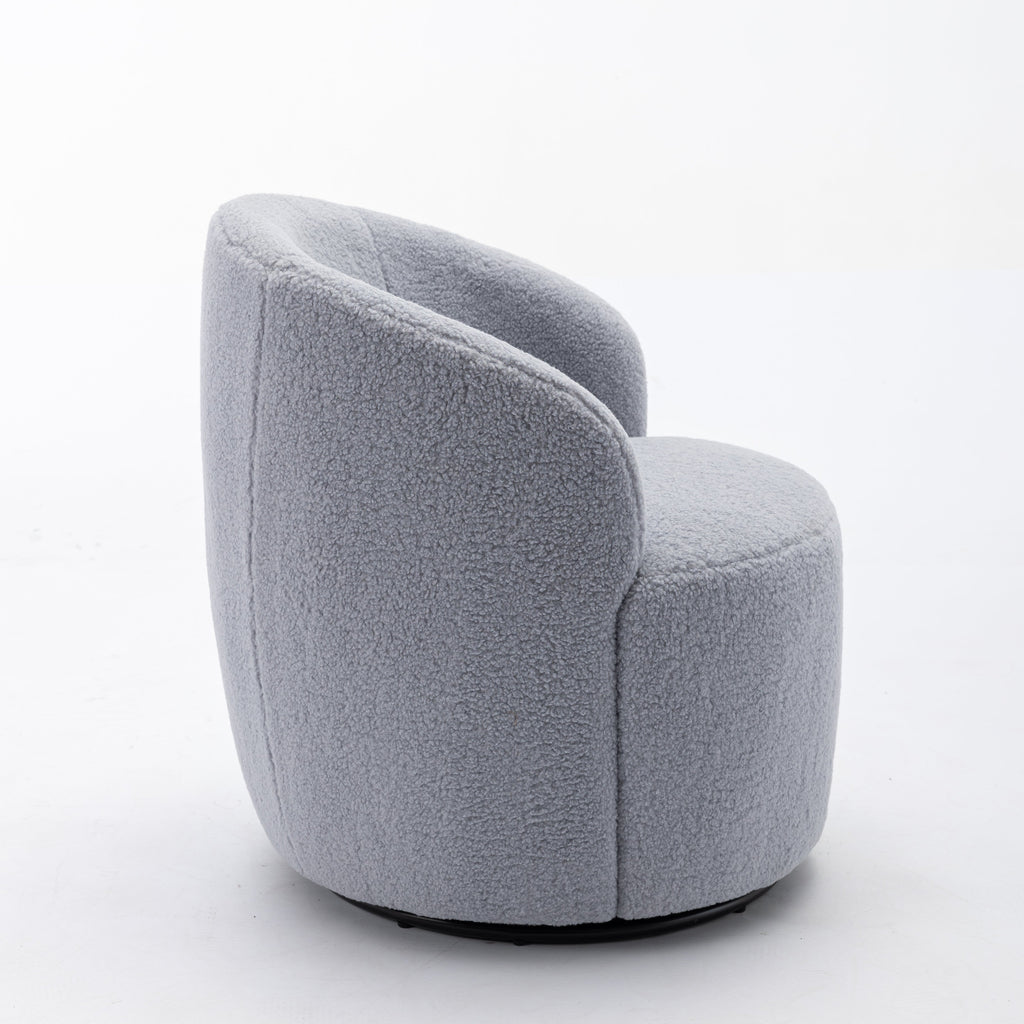 008S Swivel Accent Chair with Barrel Seat and Black Metal Ring, Light Grey Teddy Fabric