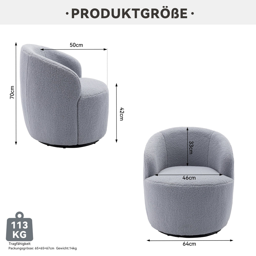 The warm texture of the teddy fabric creates a cozy atmosphere at home. This chair is made of soft teddy fabric, like a light hug, providing comfort and warmth from the moment you sit down. The rounded, egg-shaped design brings a unique visual effect and a relaxing experience, enhancing your home atmosphere.