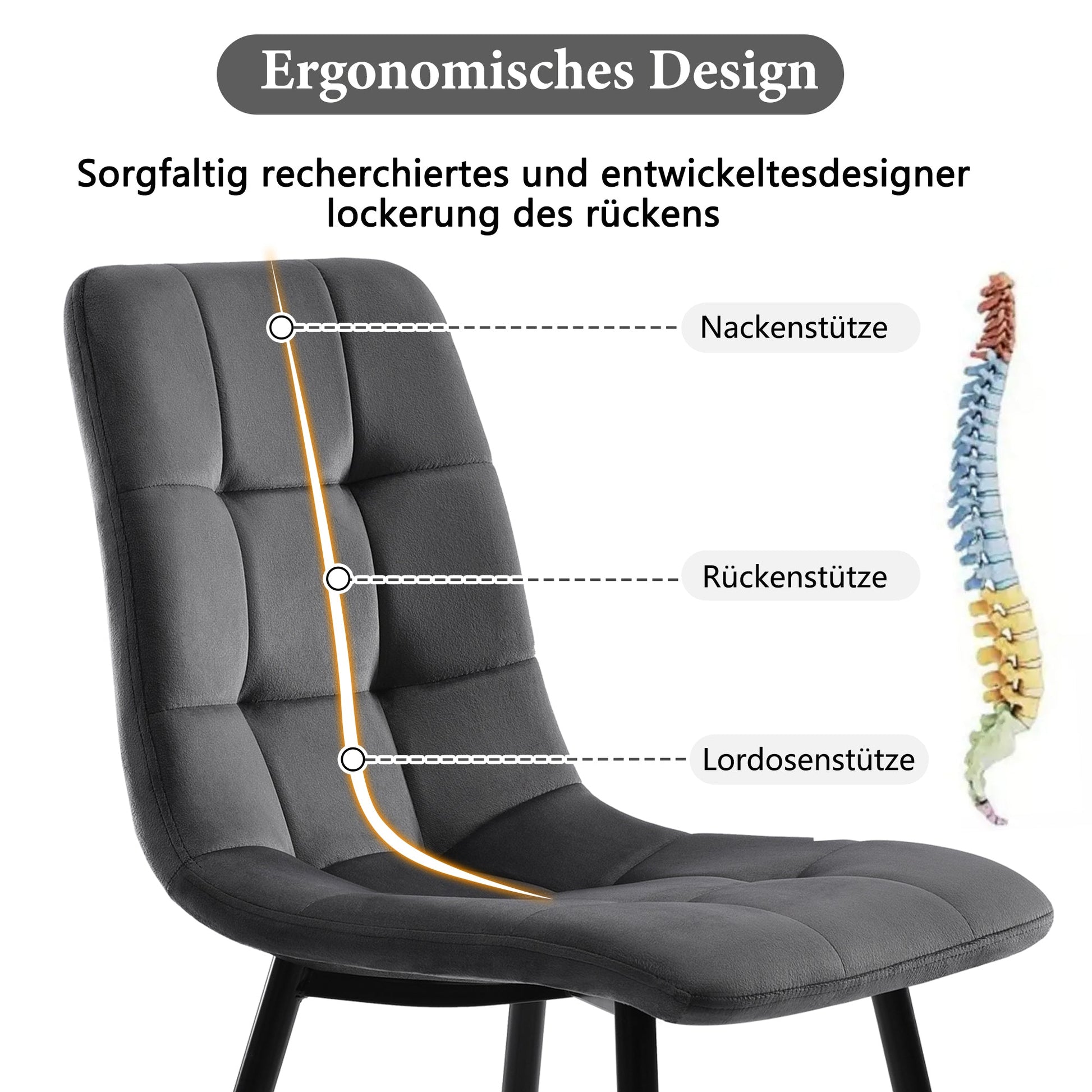 4. About the Modern Dining Chair: The chair is ergonomically designed. The sturdy frame with its four legs contrasts beautifully with the soft seat shell. The back and seat feature decorative stitching. The soft upholstery of the dining chair invites you to linger.