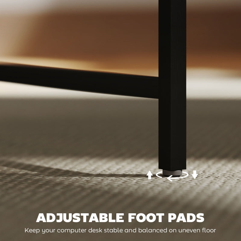 Stable and Clean: Constructed from melamine-coated particle board and a powder-coated steel frame, this computer desk is easy to maintain and clean. Adjustable foot pads keep it balanced on any surface, ensuring a reliable work desk for years.
