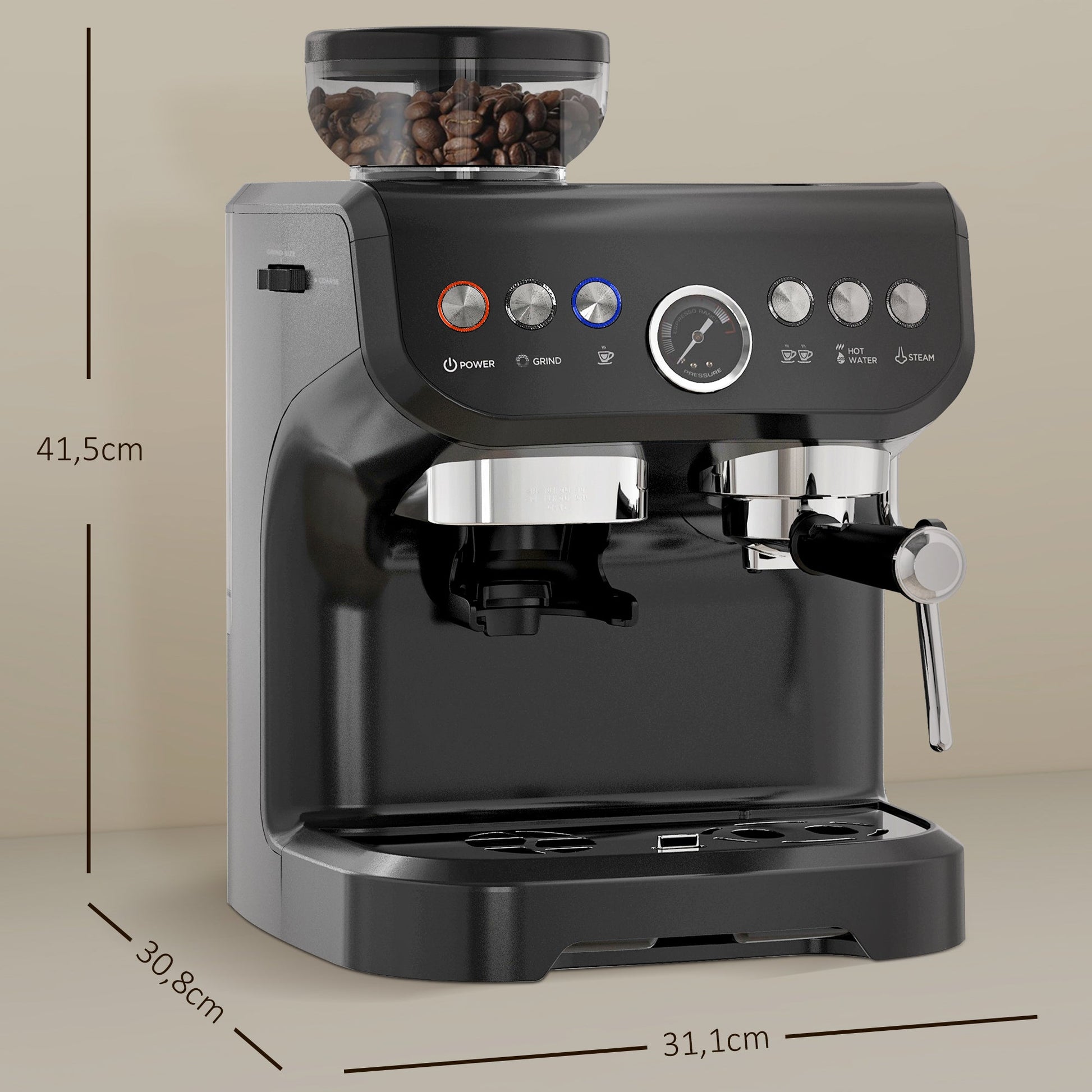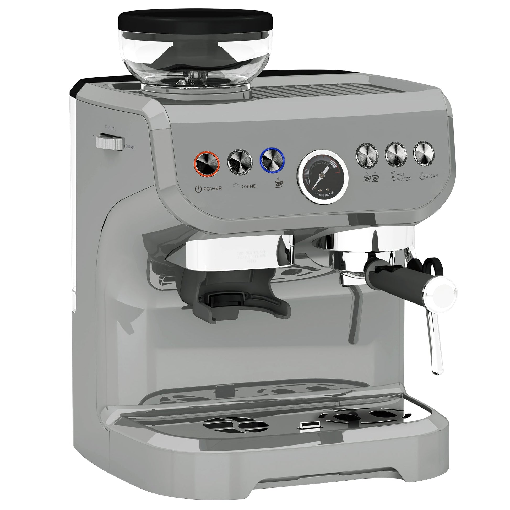 15 Bar Coffee Machine, Adjustable Grind Steamer, Silver
