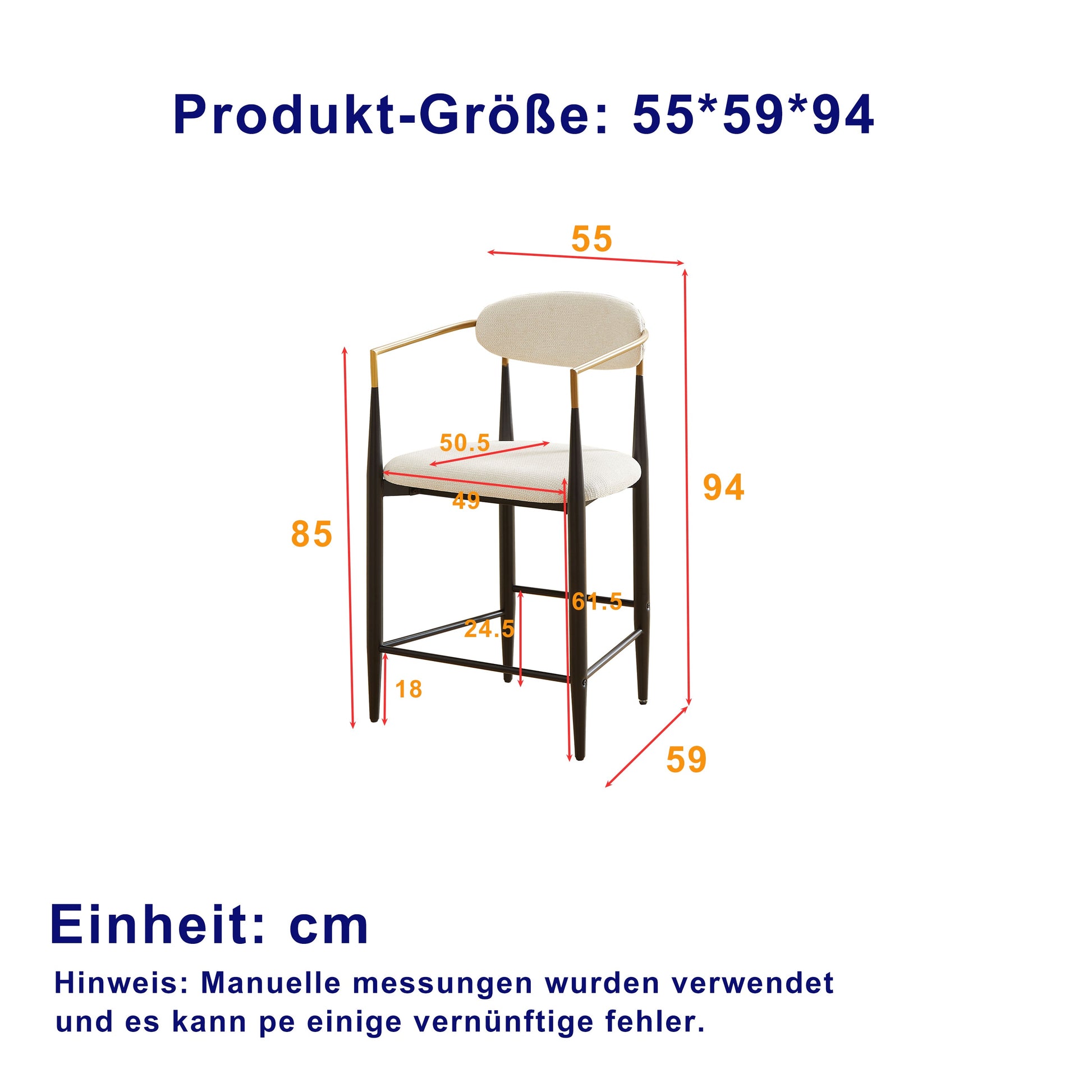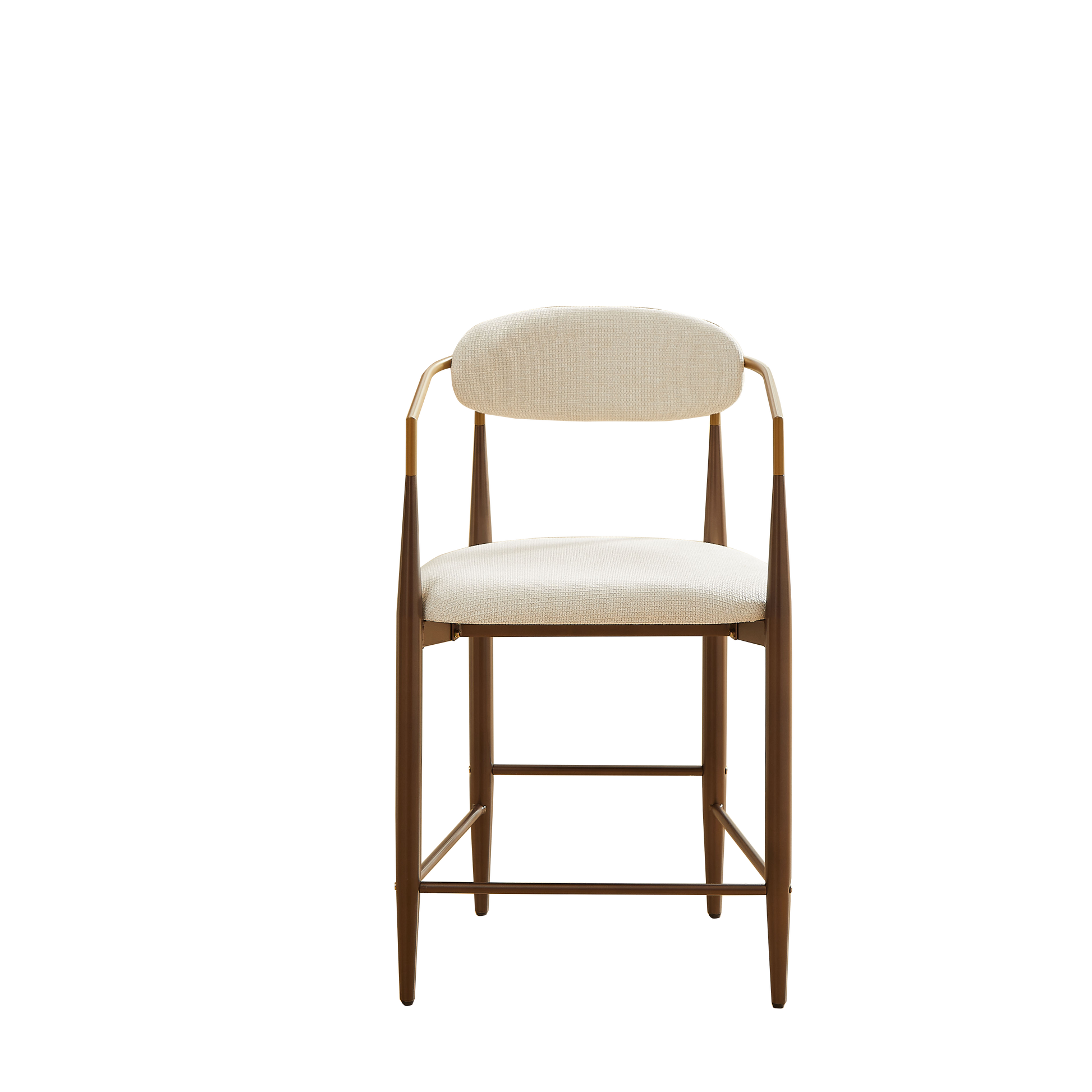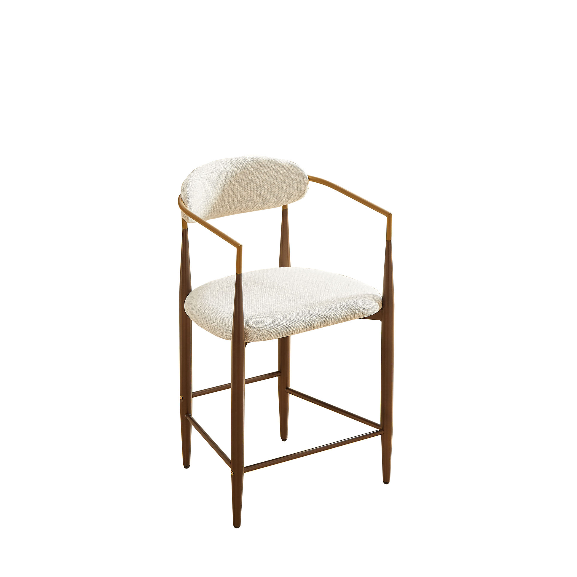 2 Bar Stools French Country Style Armrests - Cream Fabric