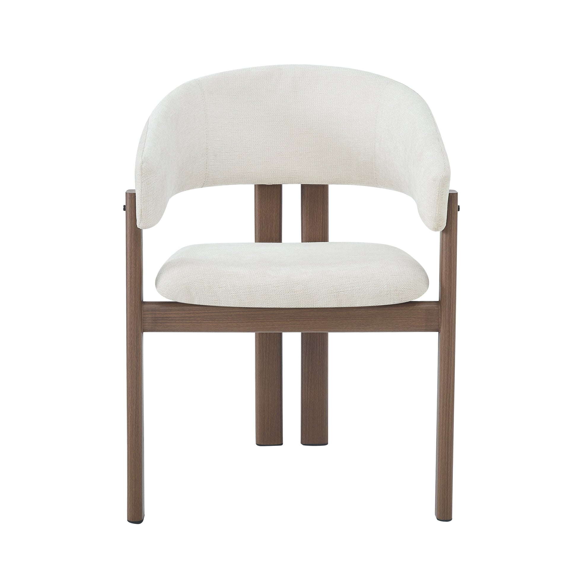 2 Dining Chairs Metal Wood Look Modern Linen Fabric - Walnut
