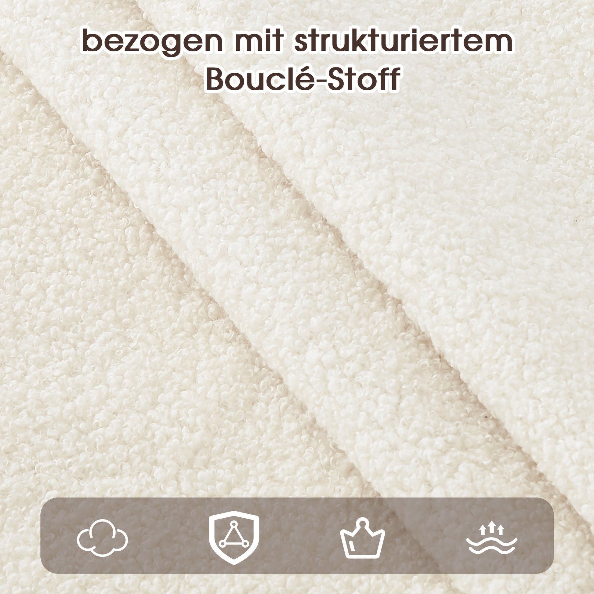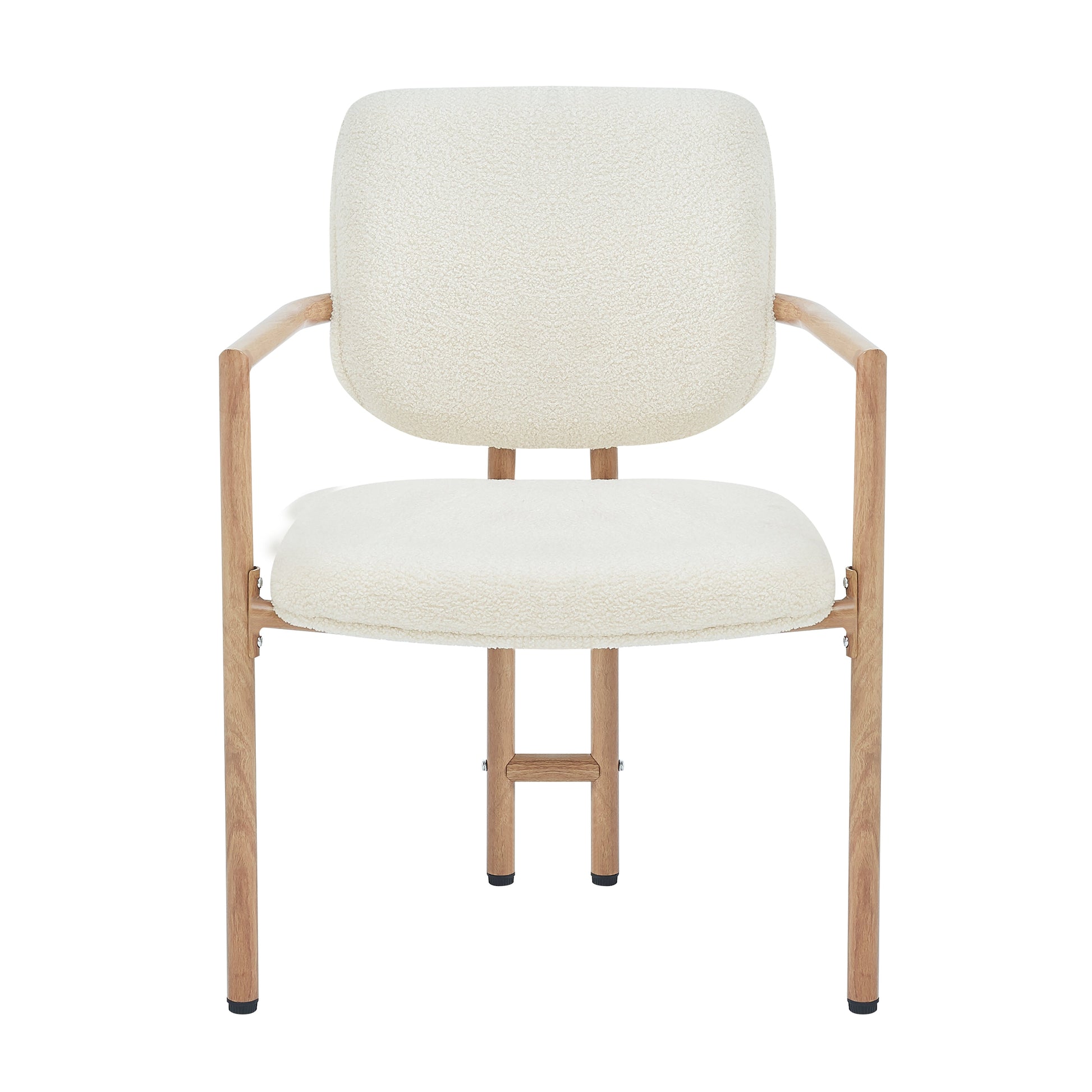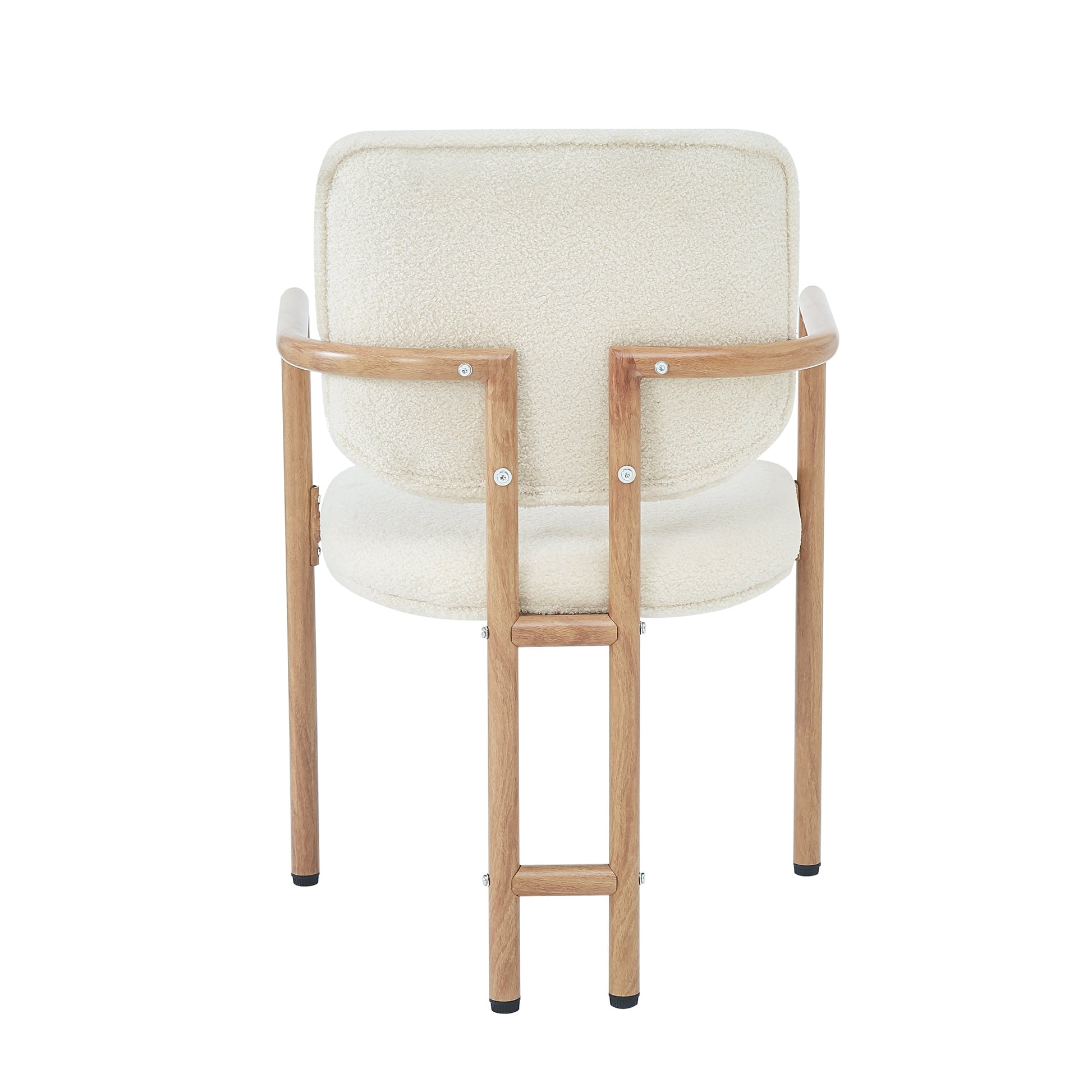 2 Dining Chairs Metal Wood Look Modern Style - Bouclé Natural Color