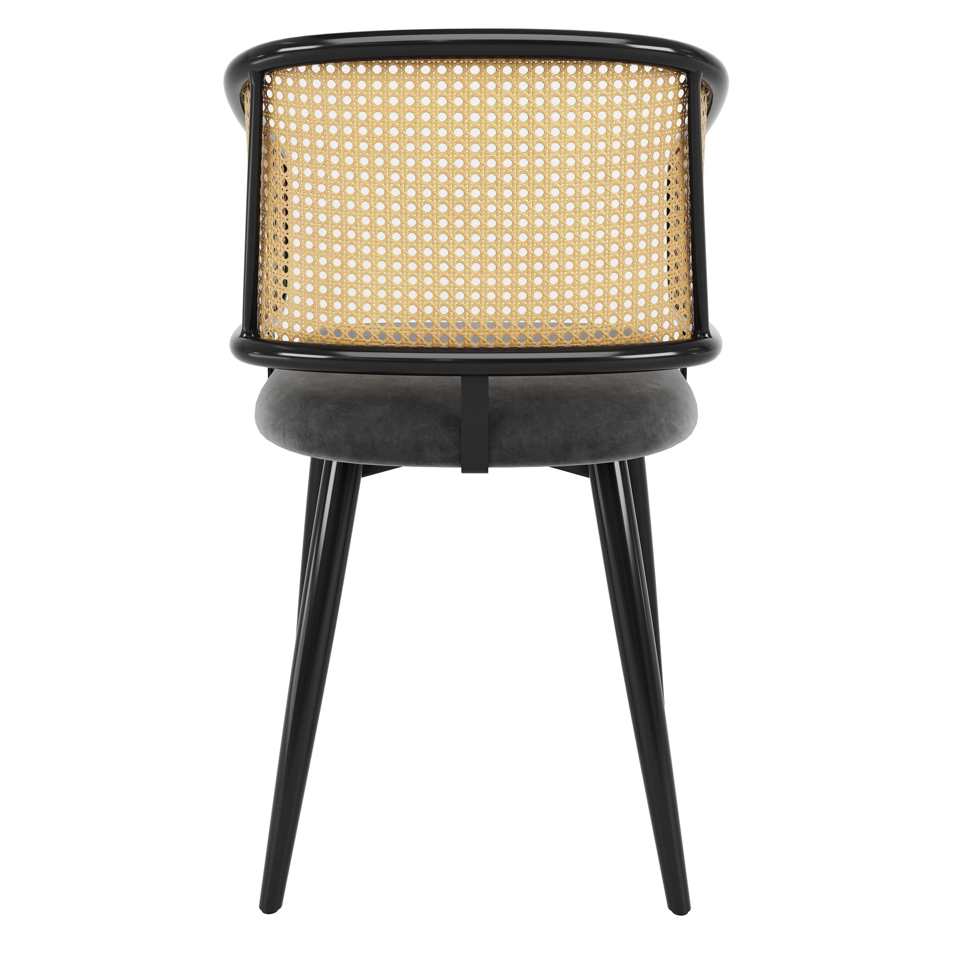 2 Dining Chairs Rattan Back Velvet Seat - Modern Style