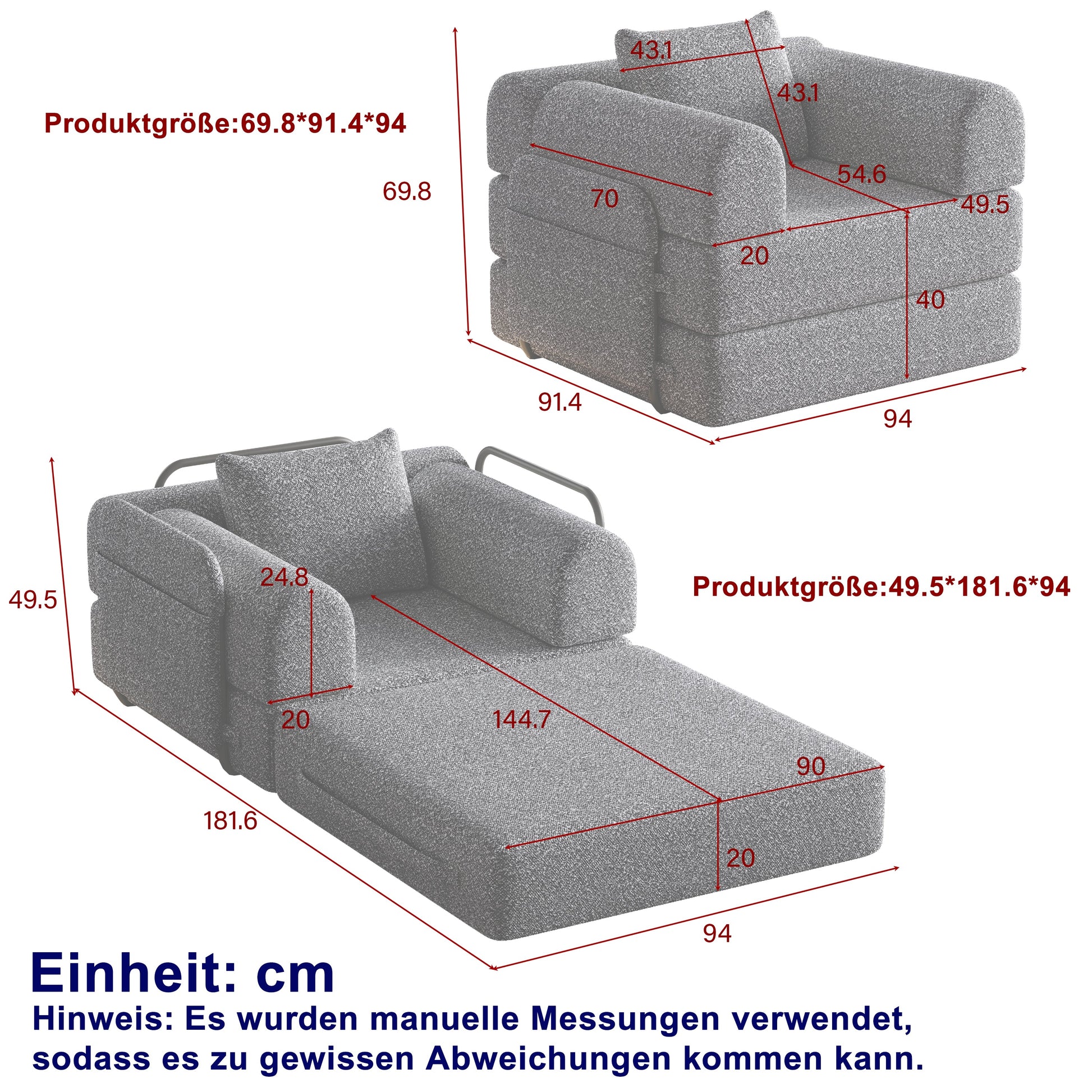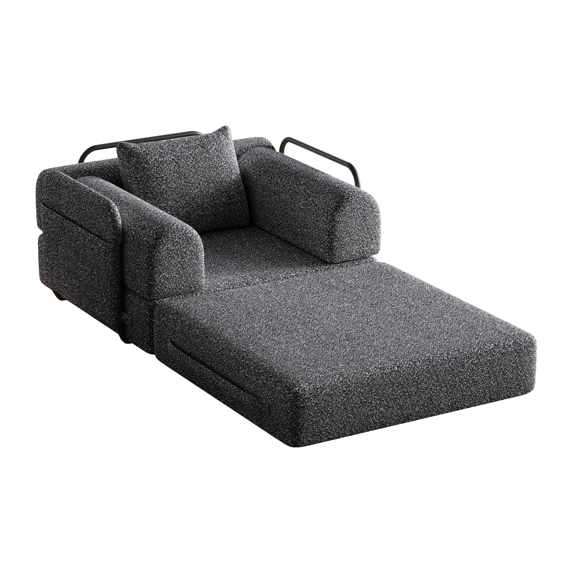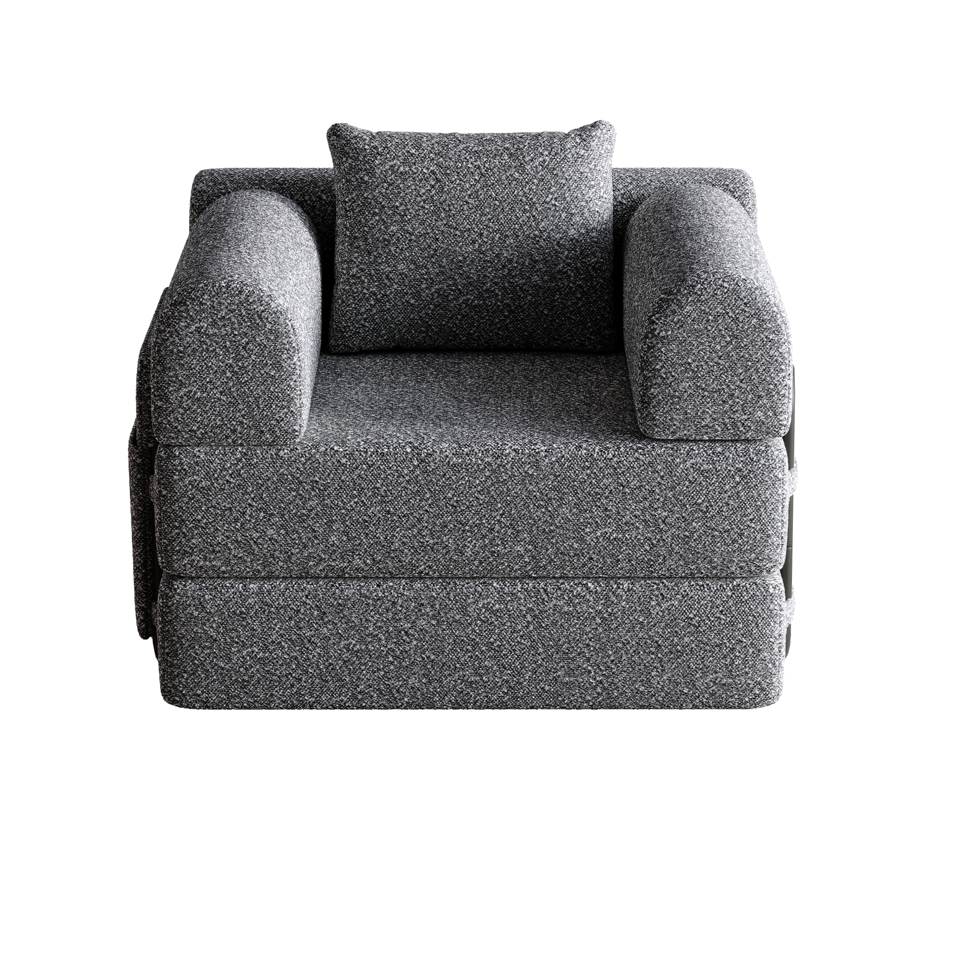 This single-seater sofa features a convenient armrest storage compartment, perfect for keeping books or snacks close by while you relax. This two-in-one sleeper sofa converts easily into a bed, providing an extra sleeping space in your home. To create the bed, simply remove one cushion and attach the two cushions together using the hook-and-loop fasteners as shown in the instructions.