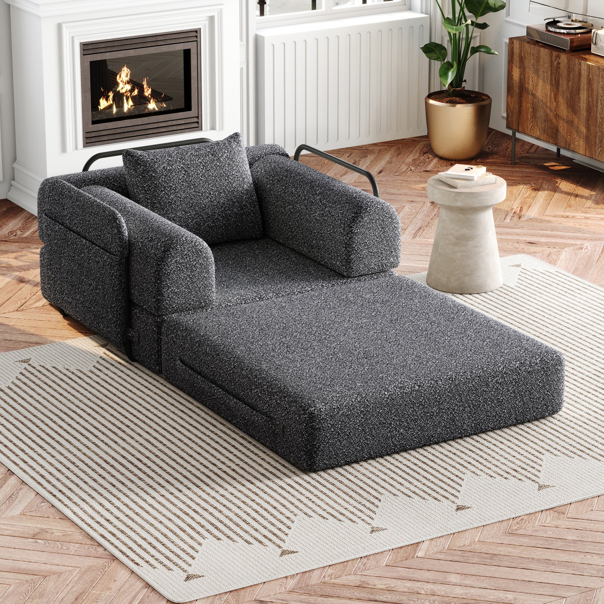 2-in-1 Sleeper Sofa with Storage Armrest and Multiple Configurations, Chenille