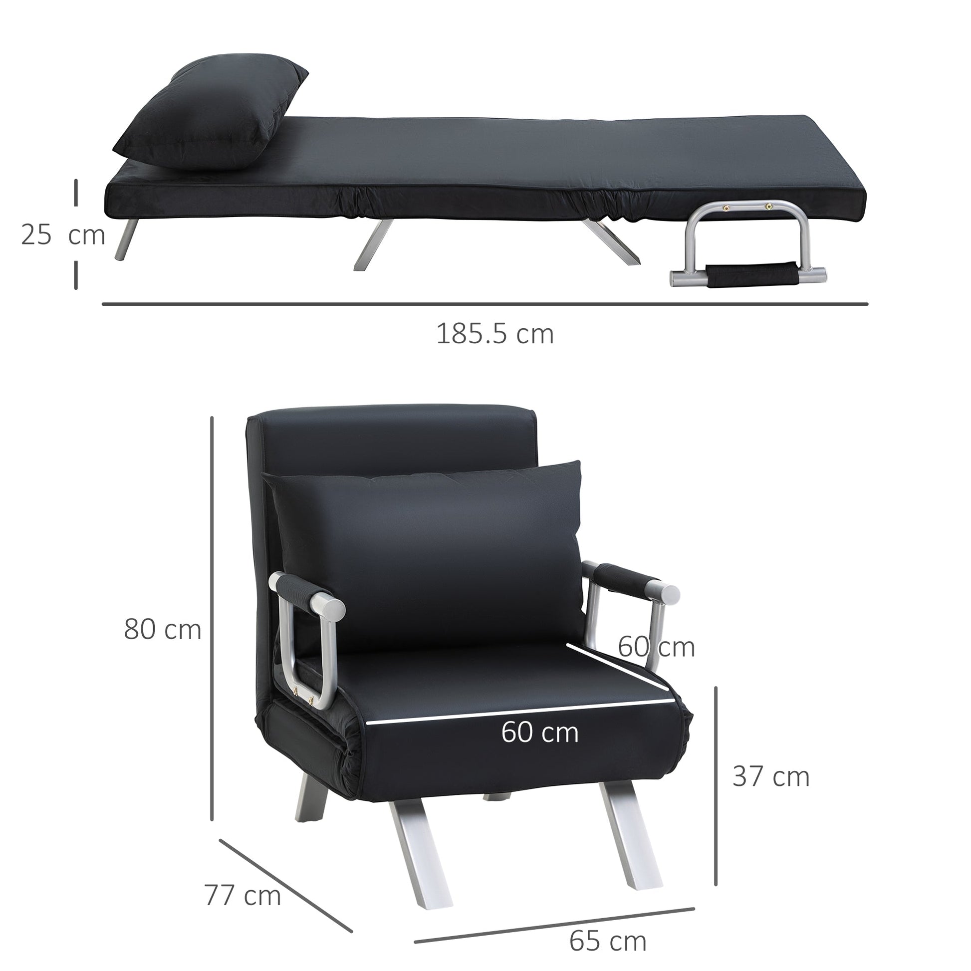 The cushion cover is removable for easy cleaning and maintenance of this convertible sleeper sofa. Overall dimensions: 65L x 69W x 80H cm (sofa), 185.5L x 60W x 25H cm (bed). Maximum weight capacity: 100kg.