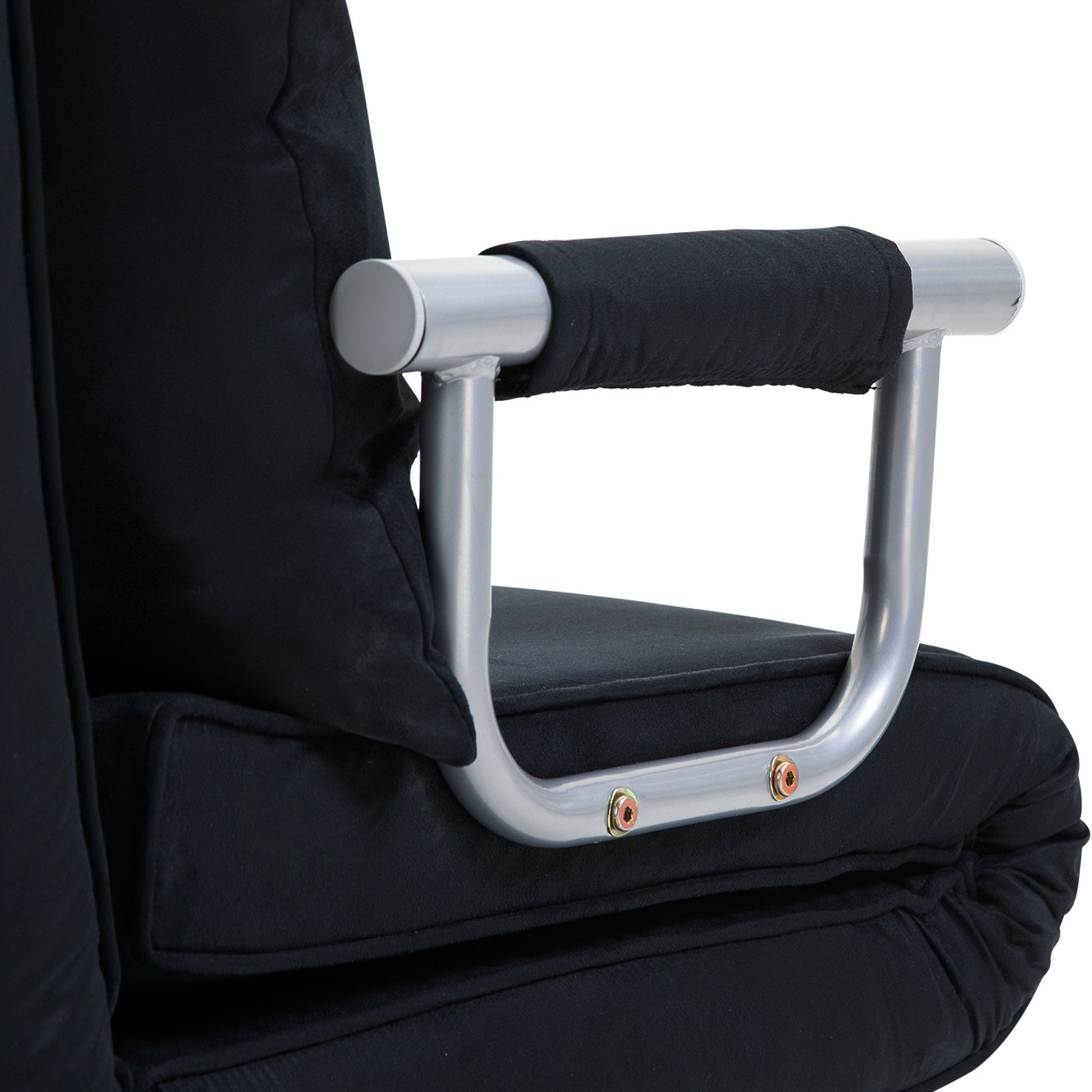 The high-quality, powder-coated metal frame of the sleeper sofa provides a stable and comfortable base. The luxurious suede fabric upholstery and dense foam ensure an unparalleled seating experience and long-lasting durability.