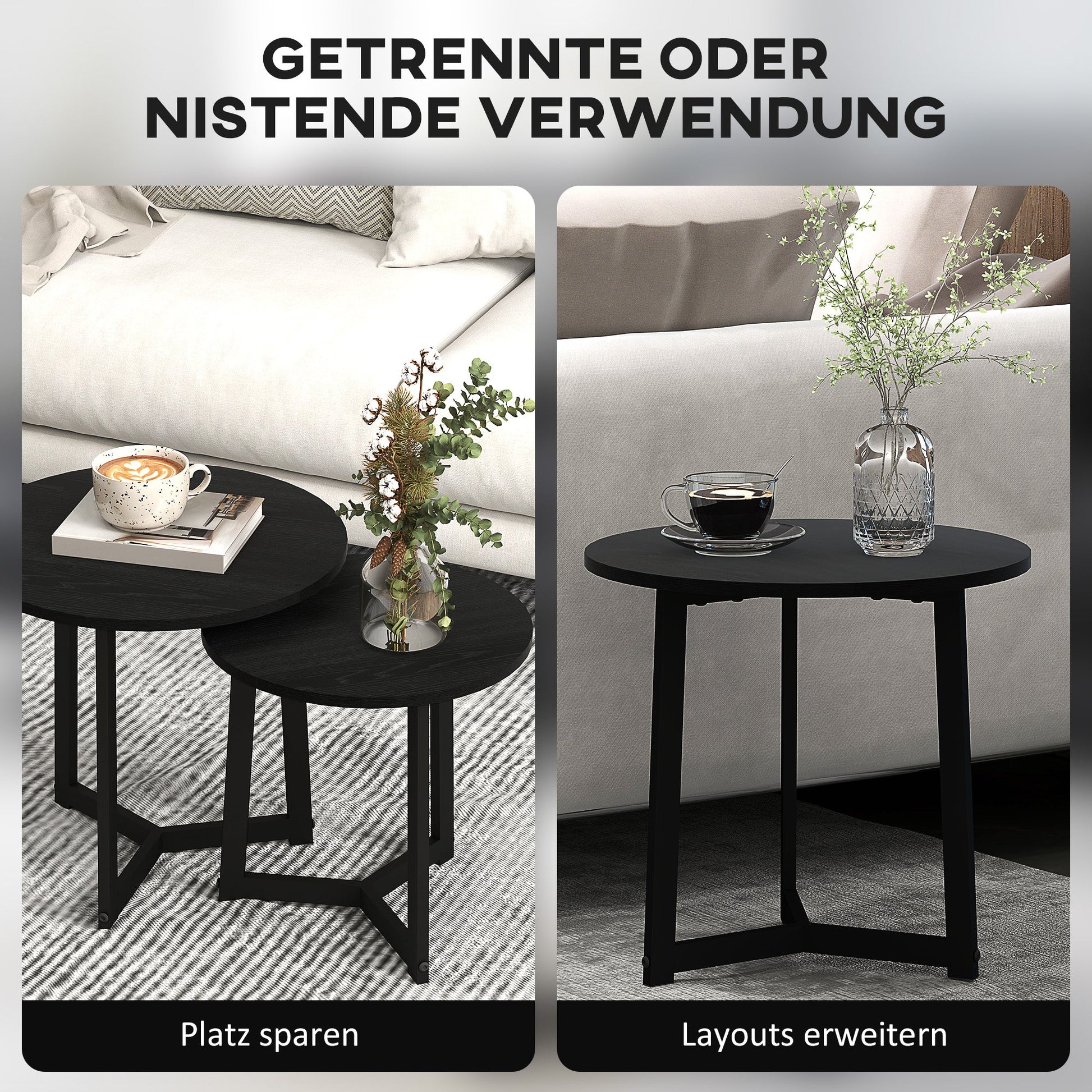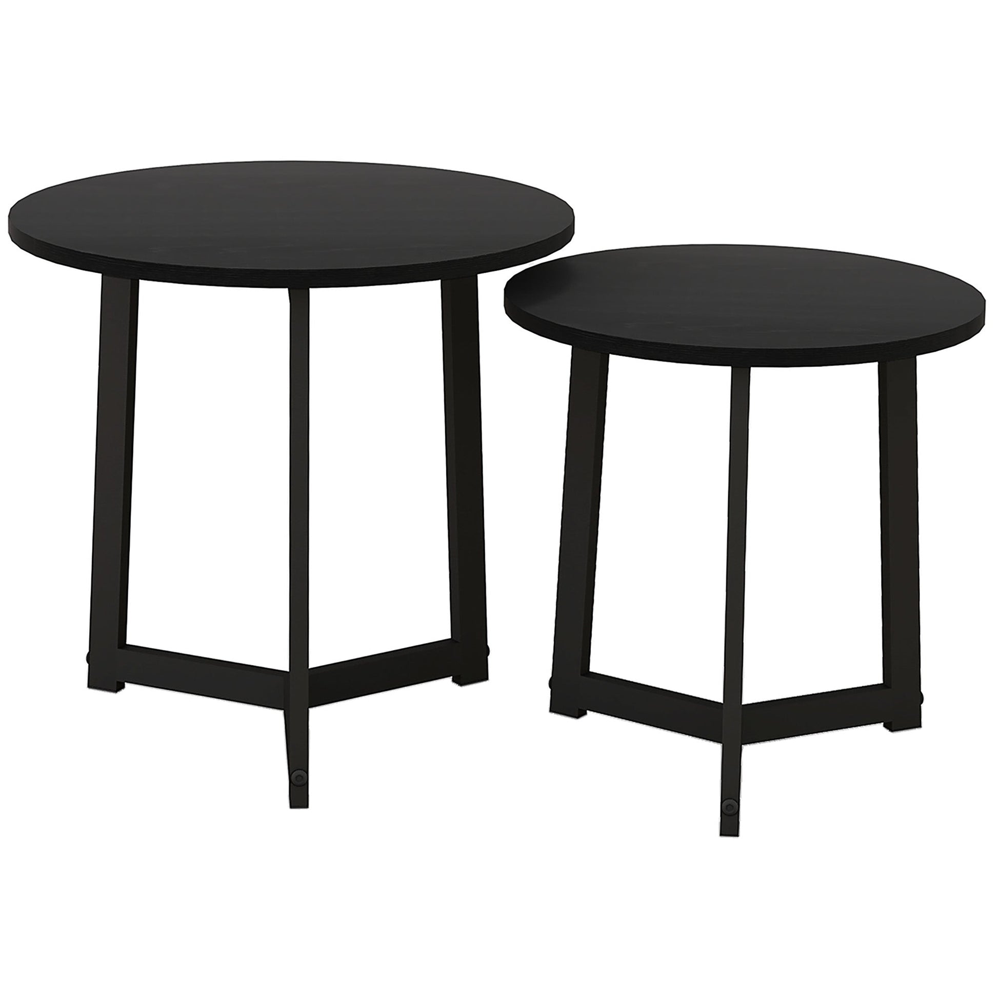 2-Piece Coffee Table Set Round Side Steel Frame, Black