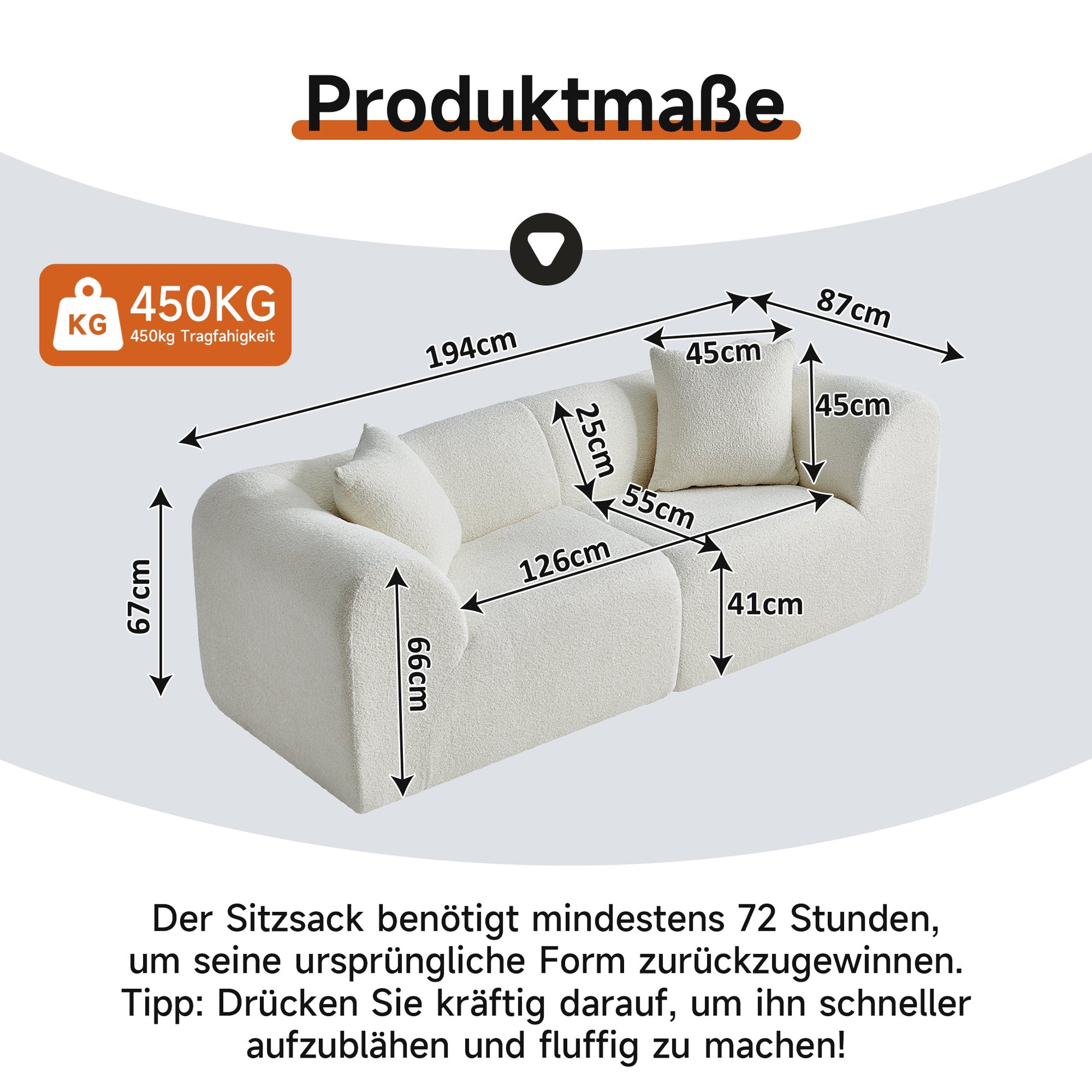 193 cm * 87 cm * 67 cm (L*W*H)