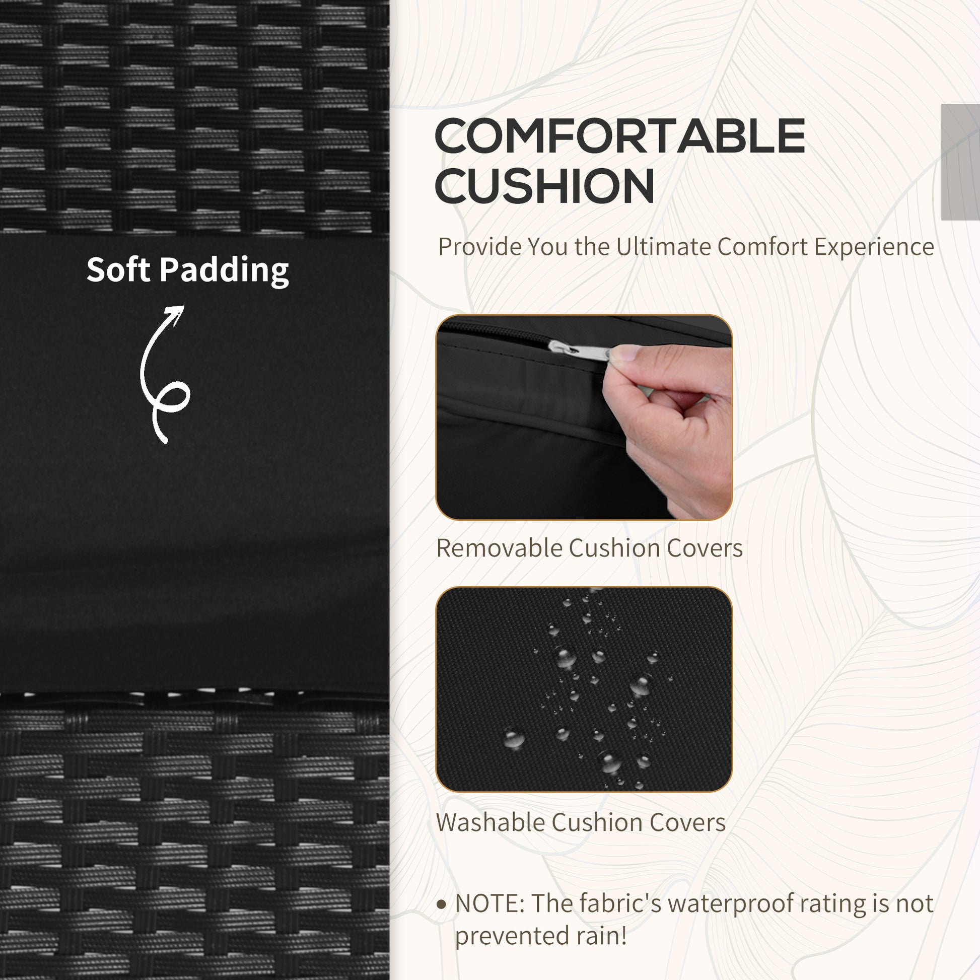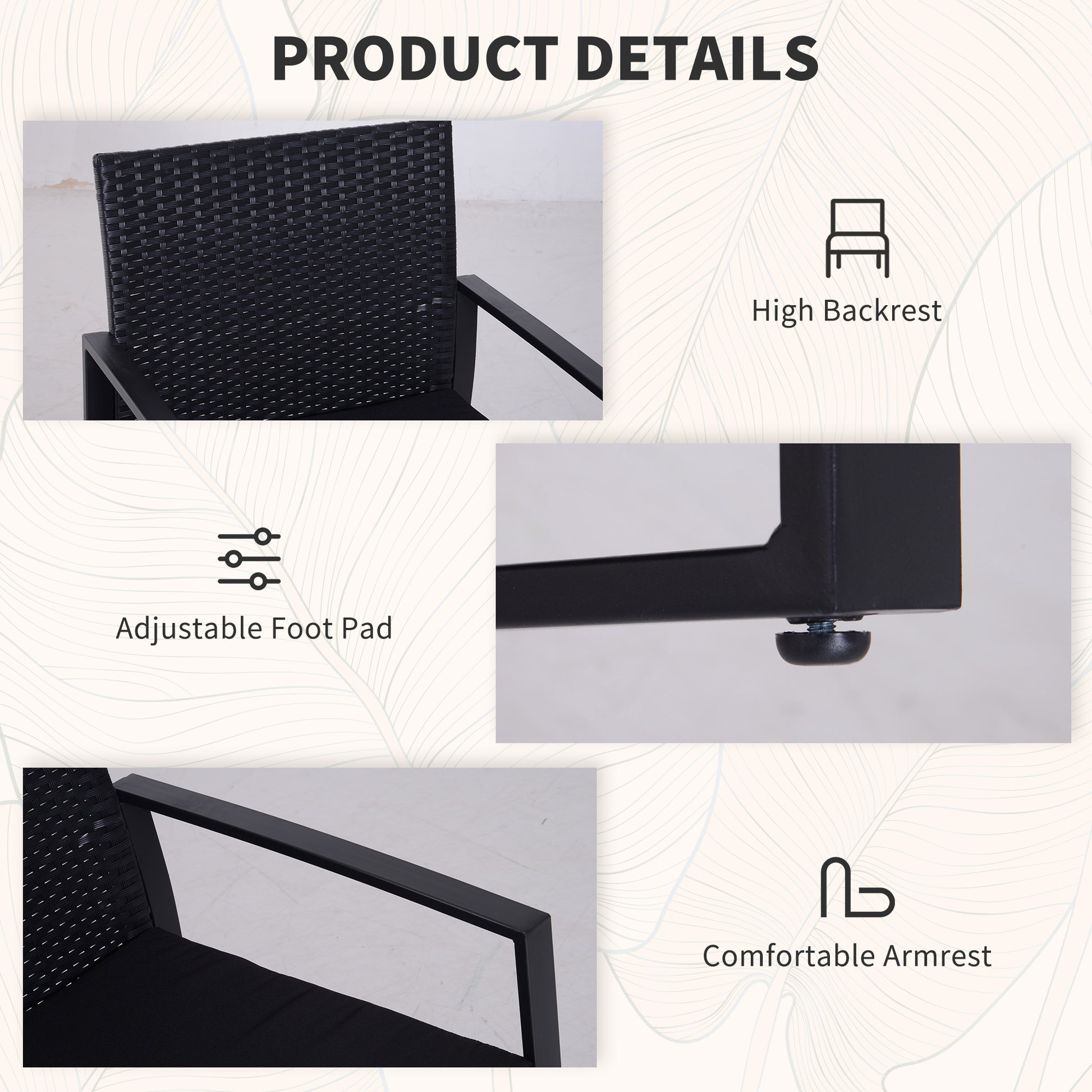 Comfortable Seats: The bistro chairs have high backrests and arms, with a padded cushion on each for comfort.