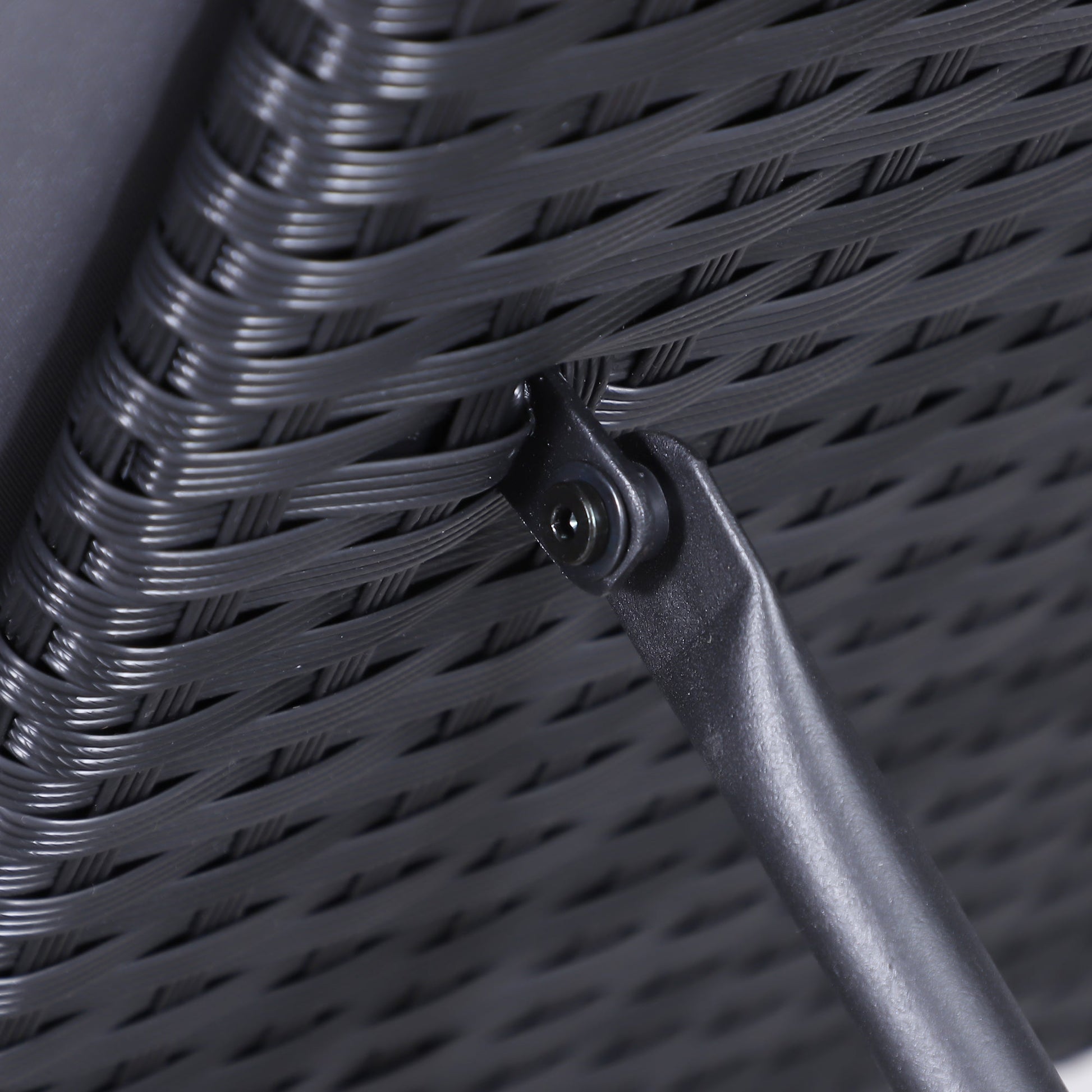 2 Seater Rattan Lounger Double Chaise with Adjustable Backrest and Cushion, Black