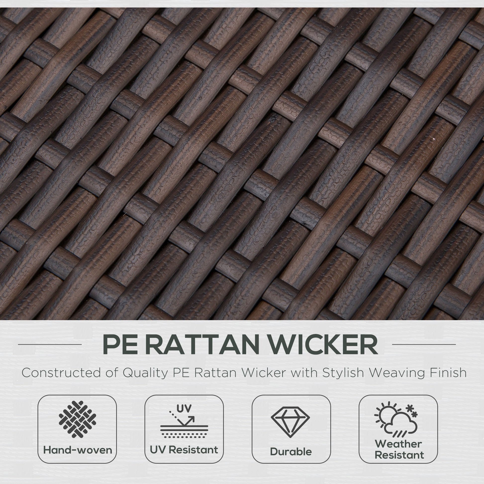 Durable 10mm PE rattan (other sellers use 6mm) makes up the material, which is fully weatherproof and UV resistant so it will not fade in the sun.